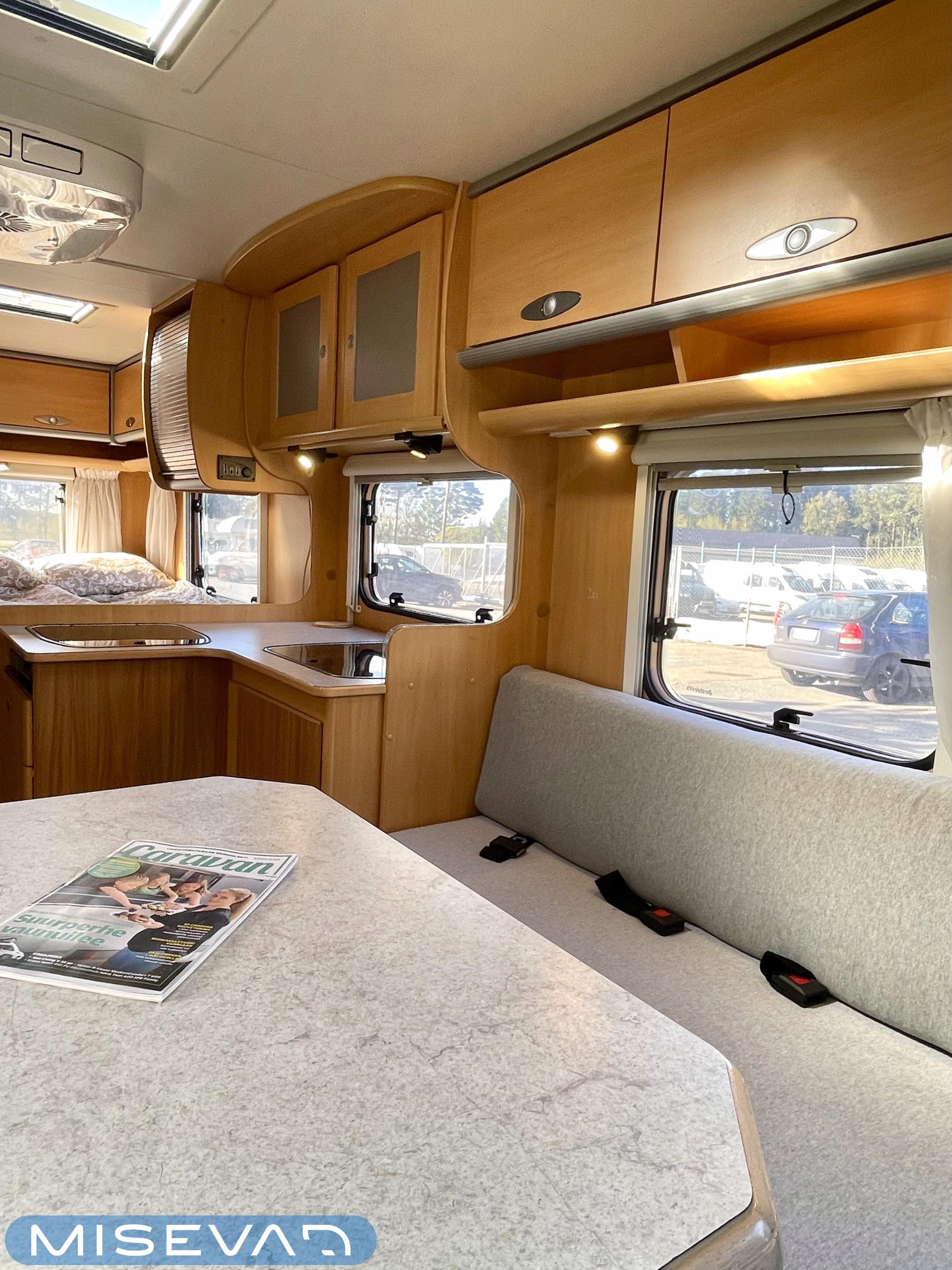 Alde, Kahdet renkaat, Kasetti WC, Kasettiverhot, Kattoluukku, Liesi, Lämminvesiboileri, Markiisi, Nestekiertolämmitys, Ohjaustehostin, Pakastelokero, Parivuode, Pesuallas, Radio, Sähköpatruuna, Webasto/Eber, kwh-mittari, astinlaudat, Alde lämmönvaihdin, kaasun ulosotto, Jääkaappi, Kompressori jääkaappi, Invertteri, Vakionopeudensäädin, Lattialämmitys (sähkö)