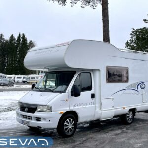 Todella siistissä kunnossa oleva saksalaisvalmisteinen Dethleffs joka tarjoaa kompakteista ulkomitoista huolimatta asialliset tilat jopa kuuden henkilön matkantekoon ja leiriytymiseen.