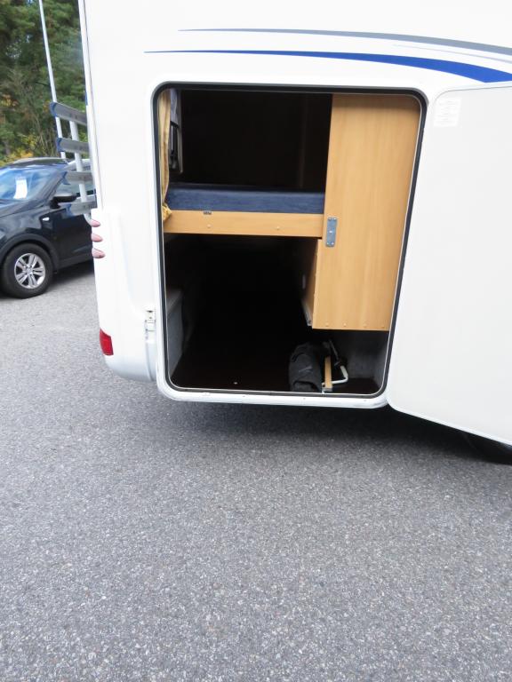 Jääkaappi,Kasetti WC,Kerrossänky,Liesi,Lämminvesiboileri,Markiisi,Polttoainekäyttöinen lisälämmitin,Pyöräteline,Stereot,Trumatic,TV-antenni/lautasantenni,soitin