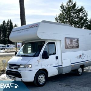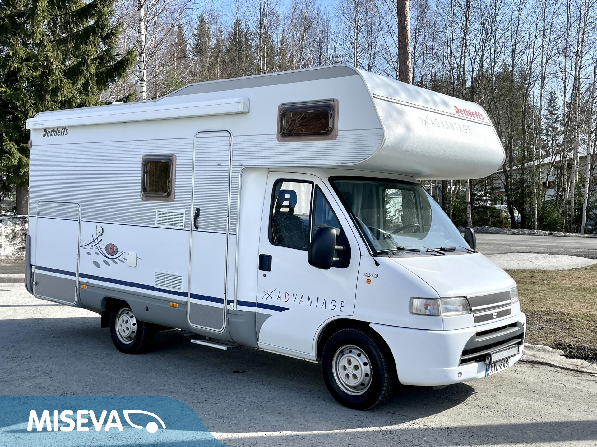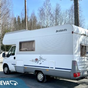 Todella asiallinen Dethleffsin alkovimallinen matkailuauto kuudelle. 2.8 litrainen JTD voimapesä liikuttelee autoa autoa vaivattomasti. Tällä autolla reissaa todellakin koko kuuden hengen porukka, sillä autosta löytyy rekisteröidyt matkustuspaikat kuudelle ja kaikille myös makuupaikat. Lämmitysjärjestelmänä on Alden nestekeskuslämmitys ja lisäksi löytyy mukavuusvarusteena sähköinen lattianlämmitys. Takana sijaitsevasta poikittaisesta kerrosvuoteesta voidaan nostaa alempi vuode ylös, jolloin saadaan käyttöön todella tilava takatalli. Keittiöstä löytyy matkailuauton perusvarustus. Valmiita petipaikkoja löytyy neljälle henkilölle ja vastakkain istuttavasta pöytäryhmästä voidaan tarvittaessa sijata vuoteet kahdelle henkilölle. Autosta löytyy myös kotelomarkiisi, sekä pyöräteline polkupyörien kuljettamista varten. Vetokoukussa on vetomassoja jarrulliselle kärrille 1740kg ja jarruttomalle kärrille 750kg. Todella siisti yksilö maltillisella ajomäärällä odottaa uutta omistajaa.