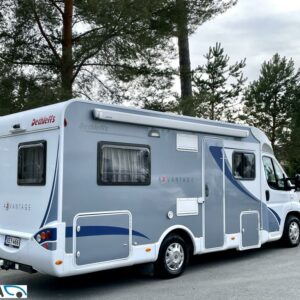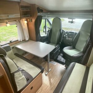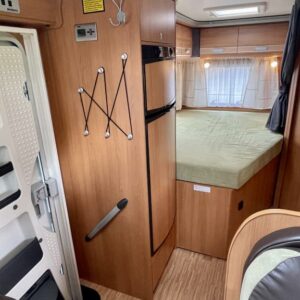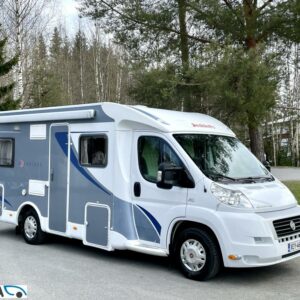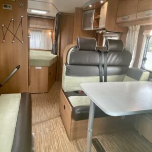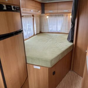 Auton takaosassa pitkittäinen parivuode ja pesuhuone/ WC. Auton etuosasta löytyy viihtyisä pöytäryhmä sivusohvalla. Keittiön varustukseen kuuluu iso jääkaappi erillisellä pakastinlokerolla.