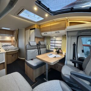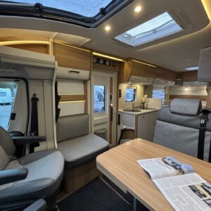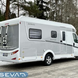 Talvi tuli, mutta tämän Dethleffssin kanssa sitä ei tarvitse lähteä Espanjaan pakoon. Tämän auton varustelussa on huomioitu erityisesti talvimatkailun vaatimukset. Lämmitysjärjestelmänä tietysti Alden nestekiertolämmitys ja pannussahan ”höökää” piisaa kaasulla 6kw ja roikassa 3kw lisää, eli taatusti riittää lämmitysteho. Lämpöä jaetaan autoon mukavan tasaisesti patteriverkoston avulla ja samassa piirissä on myös lattiakierto, eli pysyy myös lattia mukavan lämpöisenä. Lämmitysputkisto menee ohjaamoon asti ja lisävarusteena on vielä Alden ohjaamon lämpömatto. Alden nestekierto saadaan liitettyä myös auton jäähdytysjärjestelmään lämmönvaihtimen avulla, eli asunto-osan lämmittämiseen ajon aikana pystytään hyödyntämään auton moottorin tuottamaa lämpöenergiaa. Itse moottorin esilämmitykseen löytyy kauko-ohjattu Webasto polttoainetoiminen moottorin lämmitin. Ja kun alla on vielä ok kuntoiset nastarenkaat, niin nopeilla kaupoilla olet Haltin juurella vaihtamassa uutta vuotta. No mutta sitten sisätiloihin. Ensimmäisenä autoon astuessa huomaa vaaleiden värien ja panoraama ikkunan tuoman valoisuuden. Edessä on tuttuun tapaan pöytäryhmä kääntyvillä kapteeninpenkeillä ja sivupenkillä. Keskellä autoa on jokaisen gourmet-kokin valtakunta isolla jääkaapilla ja runsailla kaappi tiloilla. Takaa löytyy pitkittäinen parivuode sekä wc- ja suihkutilat. Autossahan on viralliset matkustuspaikat viidelle henkilölle ja viides lisäpaikka muodostuu lisäistuimen avulla sivupenkin paikalle. Matkustus on selkä menosuuntaan ja turvavyönä lannevyö. Mukana seuraa myös lisävuodesetti millä saadaan pöytäryhmästä 125cm leveä lisävuode. Ohjaamoonhan saadaan vielä tarvittaessa yksi vuodepaikka ohjaamopenkkien päälle tulevalla lisäpatjasarjalla (kustannus noin 400€). Todella siisti auto, niin sisältä, kun päältäkin valmiina nimenomaan TALVIreissuihin.