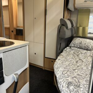 Pyöräteline, Pitkittäinen parivuode, Lämmönvaihdin, Lohkolämmitin, Alde- nestekiertoinen keskuslämmitys, Alde lämmönvaihdin, ABS-jarrut, Airbag, Ajotietokone, Erikoisvanteet, Jääkaappi, Kahdet renkaat, Kasetti WC, Kasettiverhot, Kattoluukku, Keskuslukitus: Kaukosäätöinen, Lattiamatot asunto-osassa, Liesi, Luistonesto, Lämminvesiboileri, Navigaattori, Nestekiertolämmitys, Ohjaustehostin, Pakastelokero, Pesuallas, Polttoainekäyttöinen lisälämmitin, Pysäköintikamera, Radio, Suihku, Sähkökäyttöiset ikkunat, Sähköpatruuna, Sähköpeilit, Sähkörappu, Turbo, Vakionopeudensäädin, 2 (ok) renkaat, Talvirenkaat(nasta), Tupla-akut, Eristetty harmaavesisäiliö, Multimedialaite (sis. p-kamera, navi, soitin, bluetooth, handsfree), Asuinosan hyttysovi/verho, Lattialämmitys (nestekierto), Ilmastointi (ohjaamo), harmaavesisäiliön lämmitys, jenkkijääkaappi