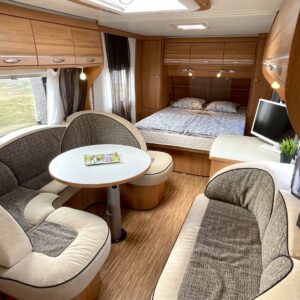 Huippuhieno ja avara Dethleffsin Aldellinen asuntovaunu pariskunnalle tai pienelle perheelle. Nestekiertolämmityksen ansiosta sopiva myös ympärivuotiseen käyttöön. Vaunun takaosasta löytyy tilava keittiö, sekä pesuhuone erillisellä suihkutilalla. Keskellä vaunua on mukavan kokoinen pöytäryhmä, jossa iltaa viettää iltaa useampikin. Vaunun etuosassa saarekevuode. Avara ja valoisa pohjaratkaisu.