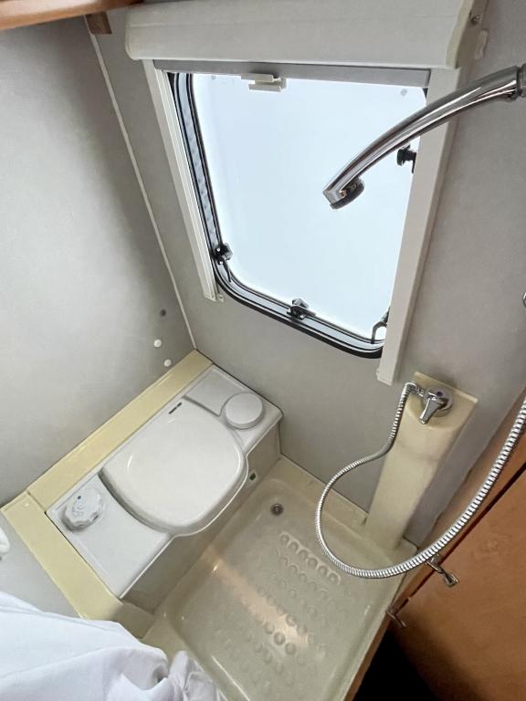 Pohjaratkaisussa takaosassa pitkittäinen parivuode ja Wc & Suihkutila. Etuosassa viihtyisä U- ryhmä joka sijattavissa toiseksi parivuoteeksi.