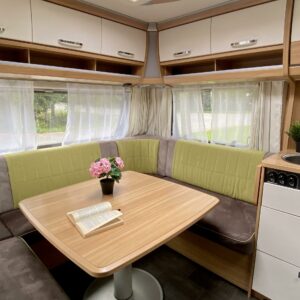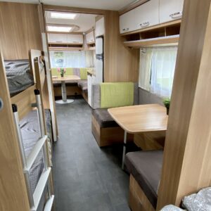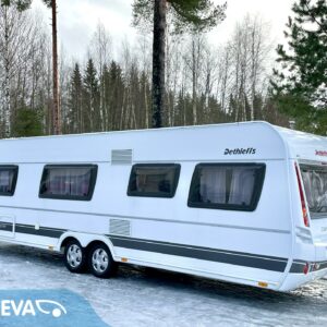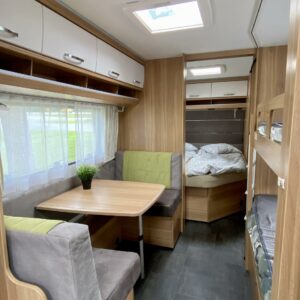 Tilava perhevaunu, jossa nukkumapaikkoja on hyvin runsaasti tarjolla. Ison U-muotoisen ruokailuryhmän ympärille saa helposti mahtumaan isommankin seurueen ja siitä on näppärästi sijattavissa lisää petipaikkoja niitä kaipaaville. Viihdykkeestä huolehtii ulko-oven vierestä löytyvä TV. Keittiöstä löytyy iso jääkaappi ja pakastelokero, kaasuliesi sekä pesuallas eli kaikki tarpeelliset ominaisuudet esimerkiksi kausipaikalla kokkailuja ajatellen. Perheen pienimmät ja miksei isommatkin majoittuvat hyvin keskiosaan sijoitetuissa kerrossängyissä. Niiden vieressä on pienempi pöytäryhmä, joka sopii oivasti esimerkiksi luku- tai askartelunurkkaukseksi. Keulassa sijaitsevat pitkittäinen parisänky ja WC/kylpyhuonetilat. Tähän vaunuun mahtuu majoittumaan isompikin porukka eikä tilan vuoksi omasta mukavuudesta tarvitse tinkiä. Vaunu saadaan väliovien avulla osastoitua kolmeen eri osioon. Lämmityksestä vastaa Trumaticin tehokkaasti ilmaa tuottava ilmakeskuslämmitys. Tässä vaunussa lämmöntuottoa on tehostettu Trumaticin kaksoispuhallinjärjestelmän avulla, eli höökää riittää kovemmillekin keleille. Vaunu on myös turvallinen perässä vedettävä Al-Ko:n ATC ajonvakausjärjestelmän ansiosta.