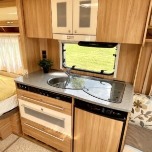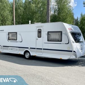 Erillisvuoteinen taka-WC:llä varustettu hieno vaunu ensimmäisen käyttäjän hienon ylläpidon jäljiltä. Tässä vaunussa on poikkeuksellisen avara lattia. Ei tarvitse kokkauspuuhissakaan olevan hypätä edestä syrjään, jos joku yrittää mennä ohitse. Vaunun takaosassa on poikittainen koko vaunun levyinen WC/kylpyhuonetila. Suihkulle on oma erillinen tilansa. Pitkittäin sijoitettujen erillisvuoteiden alle jää säilytystiloja ja toisen vuoteen alle on käynti myös ulkopuolisen luukun kautta. Kettiön alue on siis todella avara, niin kun aikaisemmin mainittiin. Keittiötasolla on myös ihan mukavasti laskutilla. Etuosaa hallitsee U-ryhmä mistä saadaan sijattua vuode kahdelle henkilölle. Lämmön tuotosta torppaan vastaa tehokas ja tasaisen lämmön tuottava Alden nestekeskuslämmitys. Aldelle tunnusomaisesti samaan lämmitinyksikköön on liitetty lämminvesiboileri, sekä sähkövastukset. Talvikelillä mukavasti jalkapohjaa lämmittää sähköinen lattianlämmitys. Pihalle kaasugrillin saa kytkettyä näppärästi toimintaa kaasun ulosoton ansiosta. Nopein on voittaja tämän tuotteen kohdalla, ole siis nopea jos aiot päästä tämän herkun omistajaksi.