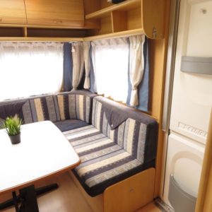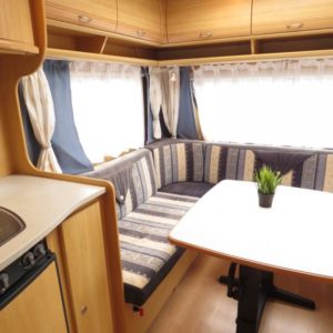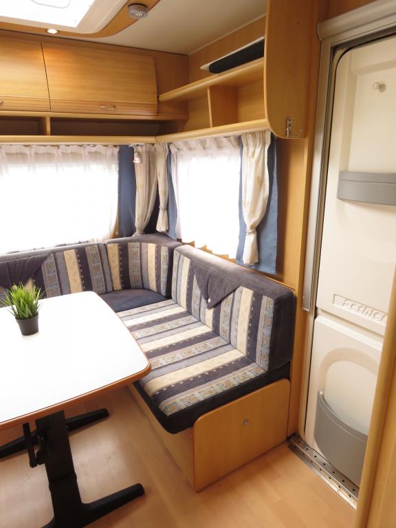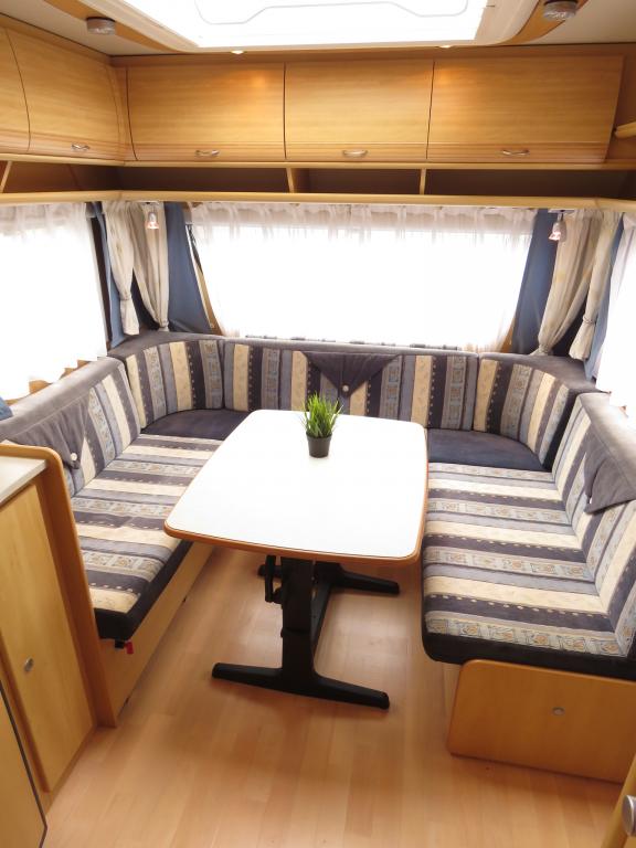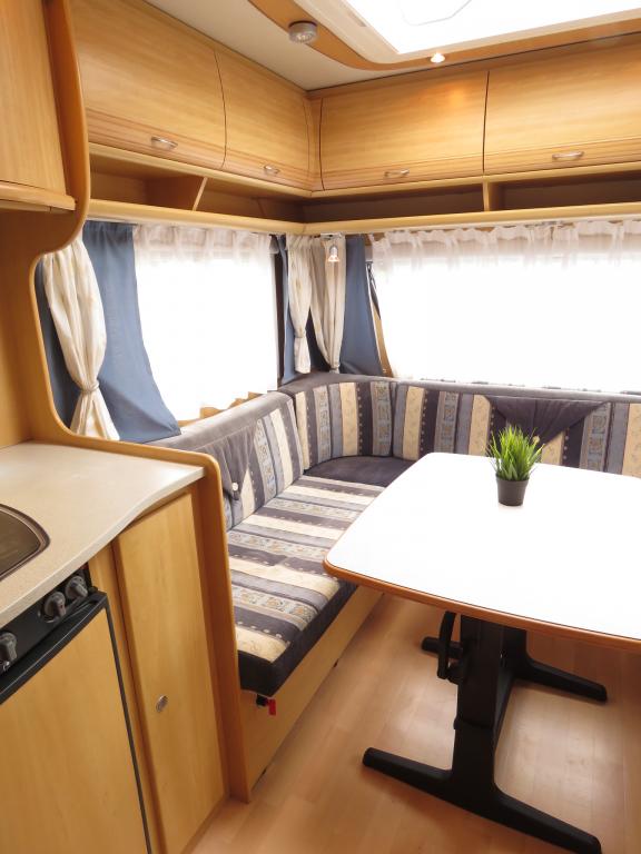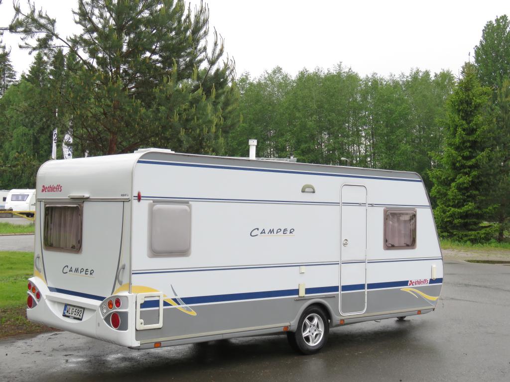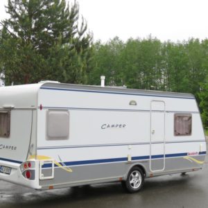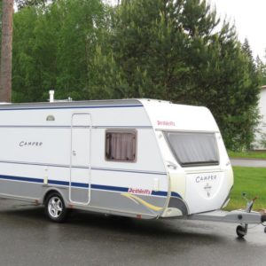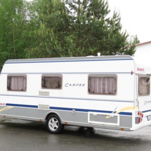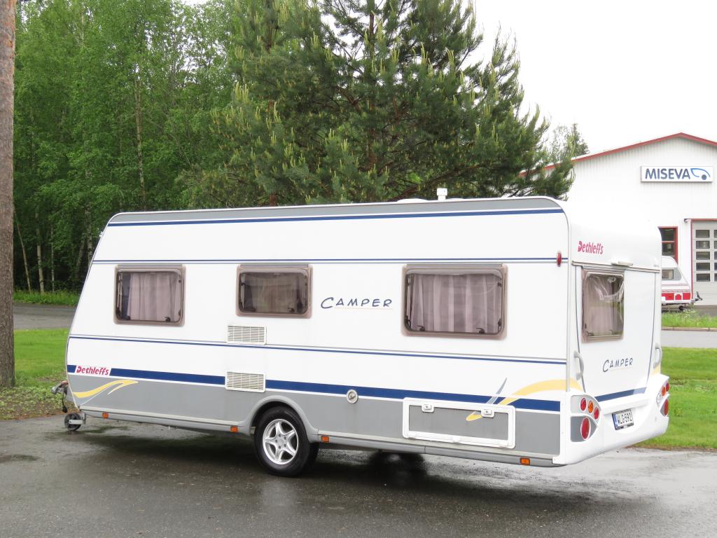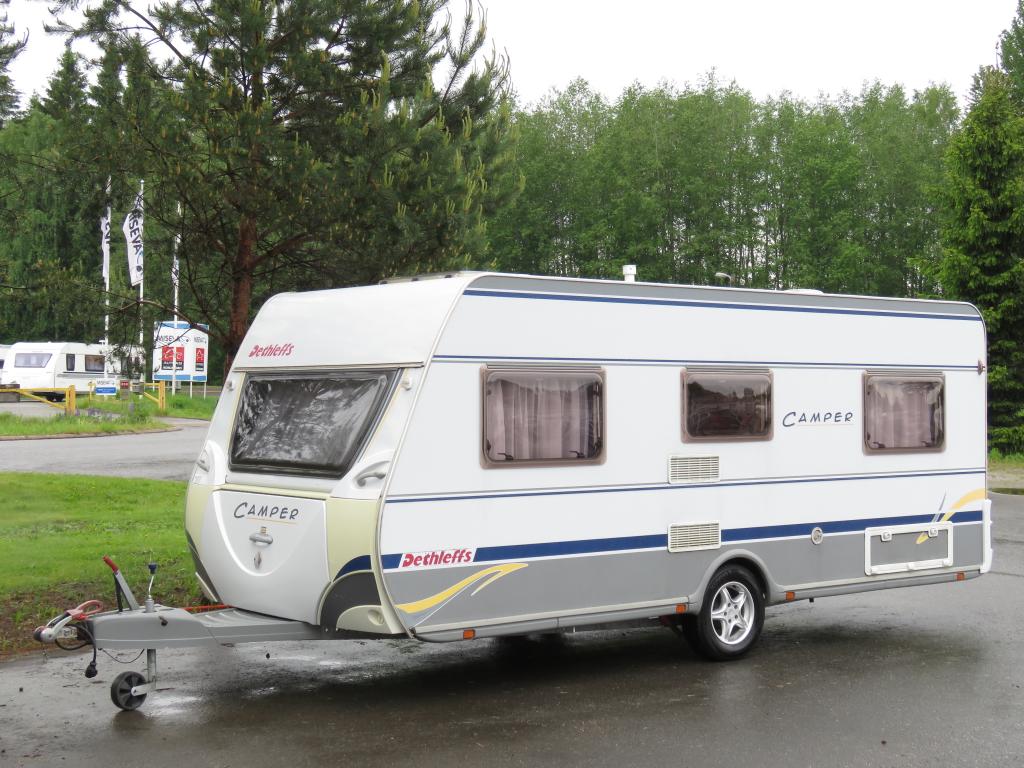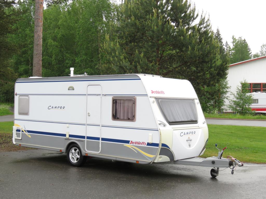 Näppäränkokoinen, kokonaispainoltaan vain 1 300- kiloinen Dethleffs nestekeskuslämmityksellä.
