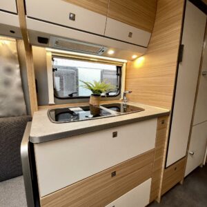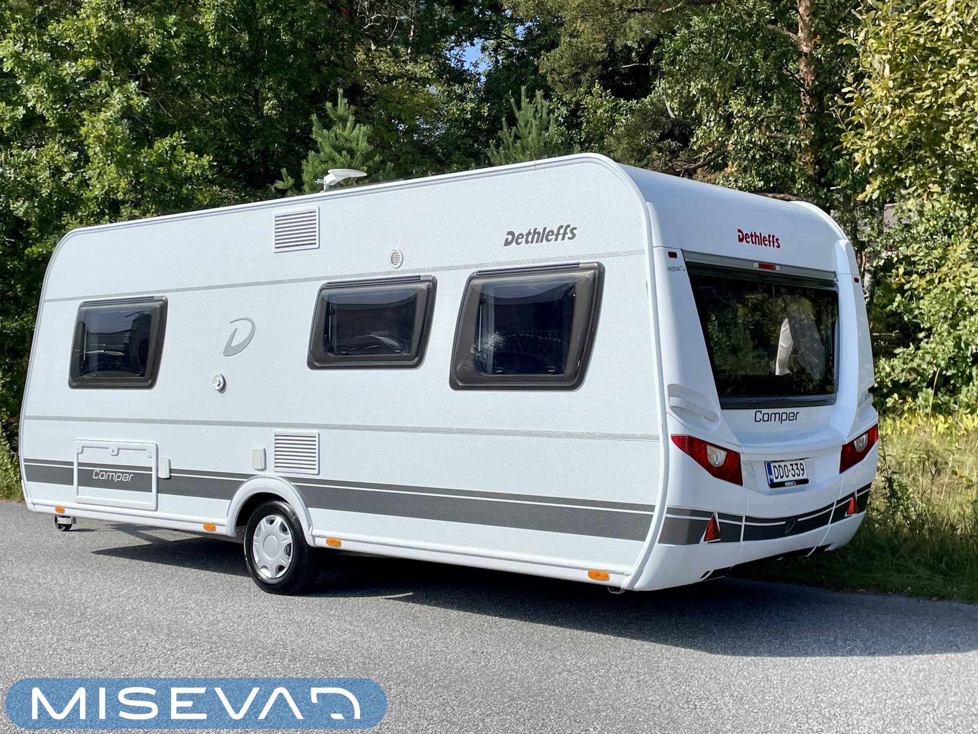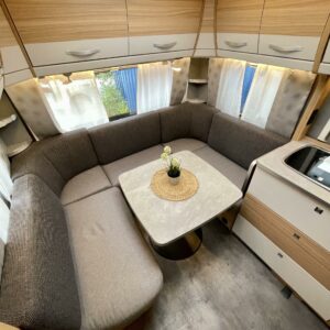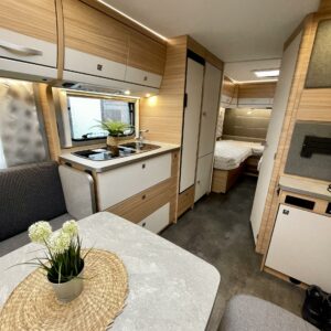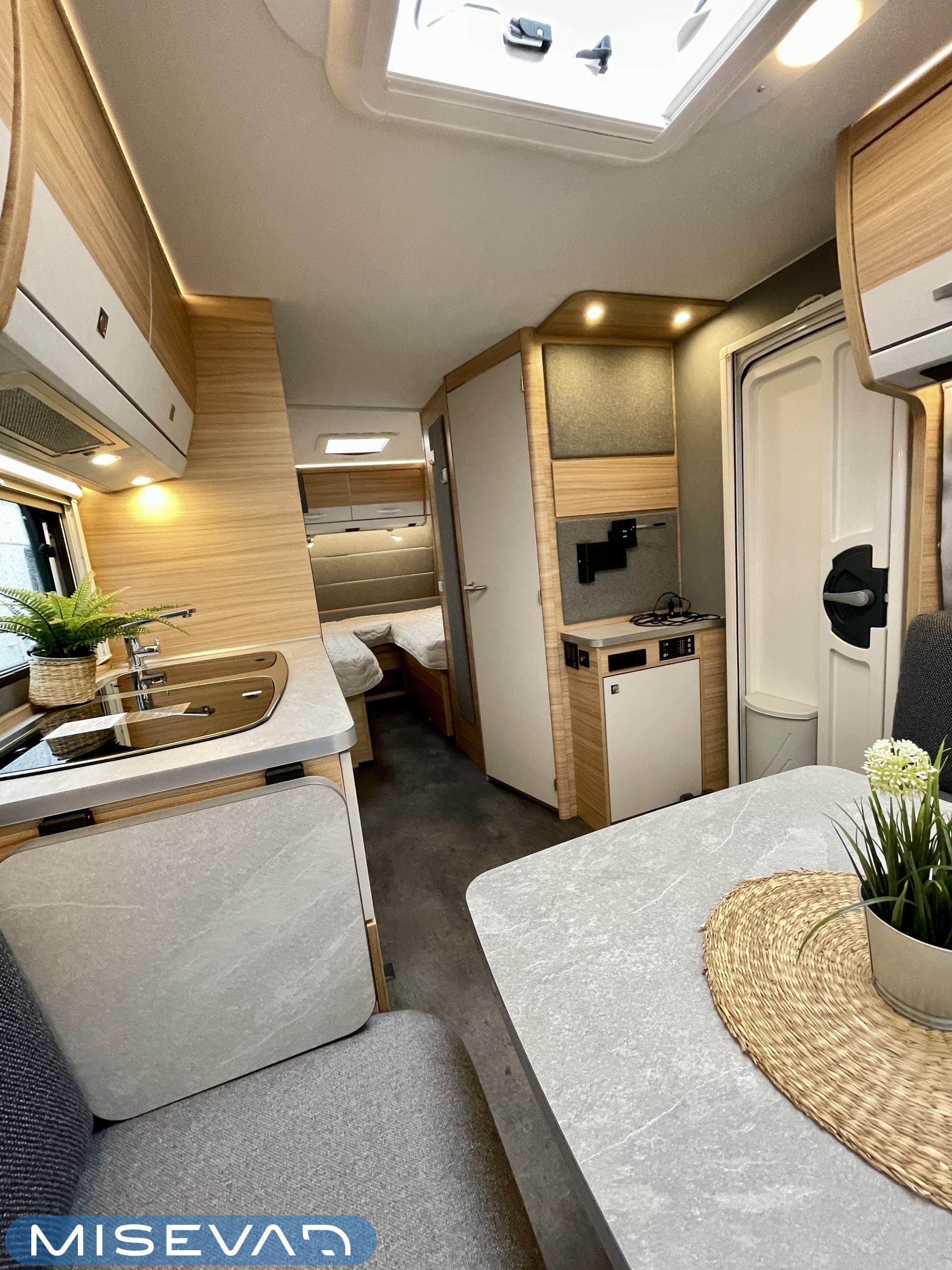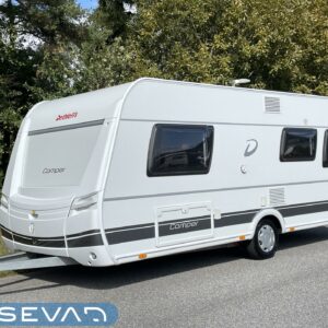 Kevyt vetää, mutta kokonsa puolesta myös loistava vaihtoehto kausipaikalle. Varusteluun kuuluu tehokas Truma 4E -lämmitin, tilava U-ryhmä, avara keittiö sekä iso jääkaappi. Kaikin puolin huolella pidetty ja siisti vaunu, valmiina uusiin reissuihin.