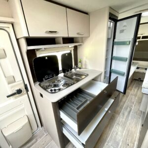 Erillisvuoteet, Jääkaappi, Kasetti WC, Kasettiverhot, Kattoluukku, Liesi, Lämminvesiboileri, Pakastelokero, Parivuode, Suihku, Trumatic, Tukijalat, Pesuallas, Sähköpatruuna, Asuinosan hyttysovi/verho, televisio, kwh-mittari, Mikroaaltouuni, TV-antenni tai lautasantenni