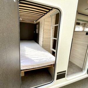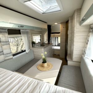 Erillainen kevyt lapsiperheen vaunu jossa mahtavat säilytystilat sekä edessä että takana. Takana lapsille omet vuoteet ja aikuisille etupäässä valmis parivuode. Ruokailuryhmä järjestyy kätevästi kun piilossa oleva pöytä vedetään esille. Virrasta huolehtii katolla oleva. aurinkopaneeli.