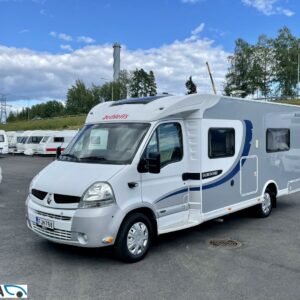Varusteina mm.: Tehokas Alde- nestekeskuslämmitys sähköpatruunalla (lämmityskierto myös ohjaamossa), Ilmastointi ajotilassa, Vakionopeudensäädin, Markiisi, Pyöräteline, Suuri jääkaappi-pakastin- yhdistelmä, Suuret valoisat kattoikkunat..