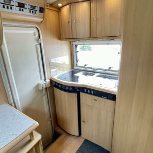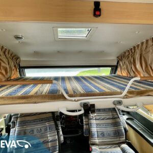 Auton takaosassa on keittiö ja pesuhuone/ WC. Etuosasta löytyy pöytäryhmä pitkällä sivusohvalla. Sivusohvasta syntyy kahdella harkitulla kädenliikkeellä parivuode. Toinen parivuode laskeutuu ohjaamon päältä.