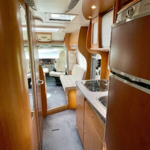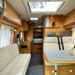 Tervetuloa kyytiin, tämä Dethleffs vie sinut juuri sinne minne ikinä haluatkin. Ja mukaan saat vielä kolme lempi tyyppiä, tilaa on. Auton takaa löytyy mukavan pehmeä parisänky, kooltaan 140x 210. Keskellä autoa on iso wc- /suihkutila, jonka erikoisuutena on suihku jossa voit istua. Mitä mukavuutta! Kokonaisuuden kruunaa iso oleskelutila kapteenin penkkeineen. Pohjaratkaisu on todella avara ja oleskelutilan vaaleat tekstiilit tuovat raikkautta sisustukseen. Tässä viihtyisi useammankin kuukauden reissussa, ei tule kotia ikävä.