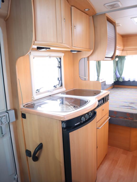 Ilmastointi ajotilassa,Ilmastointi man.,Jääkaappi,Kahdet renkaat,Kasetti WC,Kasettiverhot,Kattoluukku,Keskuslämmitys,Lattialämmitys,Liesi,Lämminvesiboileri,Markiisi,Ohjaustehostin,Pakastelokero,Parivuode,Pesuallas,Polttoainekäyttöinen lisälämmitin,Pyöräteline,Stereot,Suihku,Trumatic,Turbo,Vetokoukku