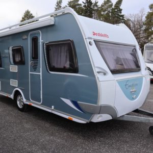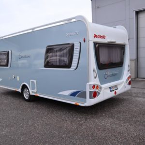 Hieno! Takana erillisvuoteet, keskellä pesuhuone sekä keittiö, edessä valoisa olohuone. Varusteina mm. Alde, lattialämpö, kotelomarkiisi, kwh-mittari. Harvinaista Exclusiv Emotion sarjaa.,