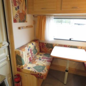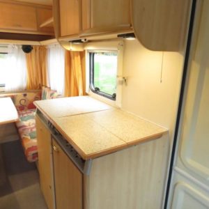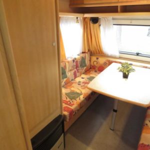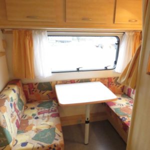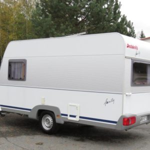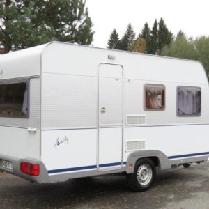 Varusteina mm: Truma- keskuslämmitys sähköpatruunalla, Kasetti- WC, TV- antenni,..