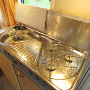 Jääkaappi,Kasetti WC,Kasettiverhot,Kattoluukku,Keskuslämmitys,Liesi,Pakastelokero,Pesuallas,Sähköpatruuna,Trumatic,Tukijalat