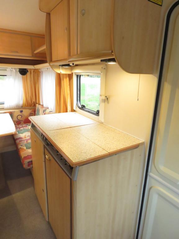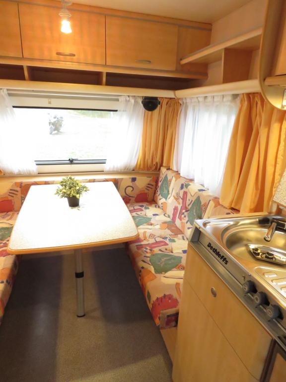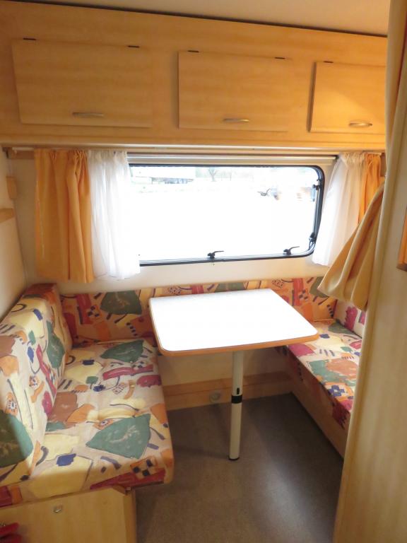 Varusteina mm: Truma- keskuslämmitys sähköpatruunalla, Kasetti- WC, TV- antenni,..