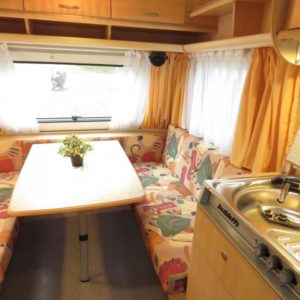Varusteina mm: Truma- keskuslämmitys sähköpatruunalla, Kasetti- WC, TV- antenni,..