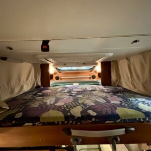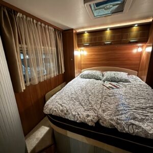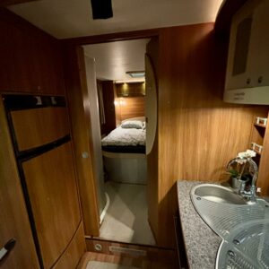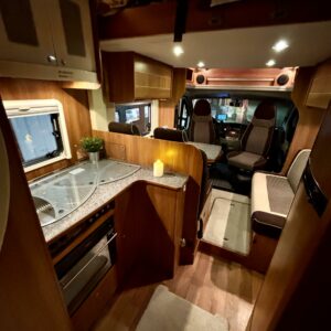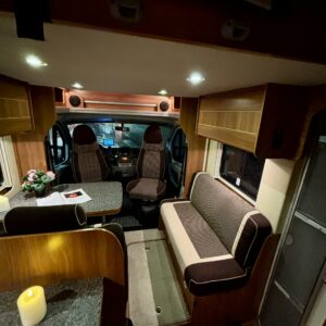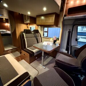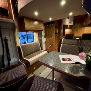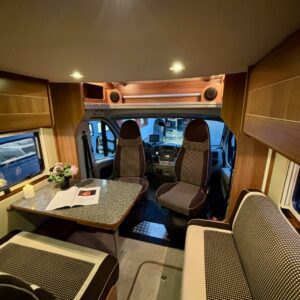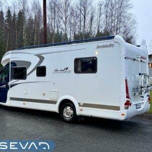 Reilut reissutilat tarjoava Dethleffsin puoli-integroitu matkailuauto. Autosta löytyy kaksi parivuodetta mistä toinen sijaitsee saarekevuoderatkaisuna auton takaosassa ja toinen pöytäryhmän päällä laskuvuoteena. Takaosassa on myös erilliset suihku- ja WC-tilat. Keskeltä löytyy L-keittiö ja normaalin keittiövarustuksen lisäksi varusteena on myös kaasu-uuni. Etuosa on pöytäryhmää minne yhdistyvät kääntyvät ohjaamon penkit, sekä kahden istuttava sivusohva. Auton alusta on korkeammille massoille mitoitettu Maxi-alusta ja moottorina isompi kolmelitrainen moottori. Voimalinjan jatkeena on automaattivaihteisto. Sen verran tällä reissukodilla on massaa, että ohjastamiseen tarvitaan vähintään C1-luokan ajo-oikeus. Ohjaamosta löytyy tietysti ilmastointi, vakkari, sekä monitoiminäyttö kameralla ja navilla. Fillarit matkaa mukana takaseinälle sijoitetussa pyörätelineessä ja kotelomarkiisi tarjoaa suojaa niin sateelta, kun auringonkin paahteelta.