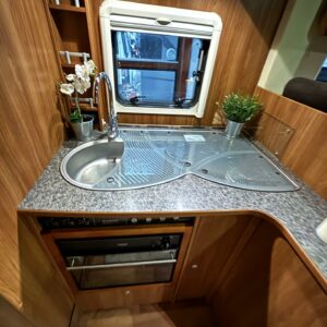 Ajotietokone, ABS-jarrut, Airbag, Ilmastointi ajotilassa, Jääkaappi, Kasetti WC, Kasettiverhot, Kattoluukku, Keskuslämmitys, Lattiamatot asunto-osassa, Liesi, Lämminvesiboileri, Markiisi, Navigaattori, Ohjaustehostin, Pakastelokero, Parivuode, Pesuallas, Pysäköintikamera, Pyöräteline, Radio, Suihku, Sähkökäyttöiset ikkunat, Sähköpeilit, Sähkörappu, Trumatic, Vakionopeudensäädin, Kesärenkaat, laskuvuode, saarekevuode, Kaasu-uuni