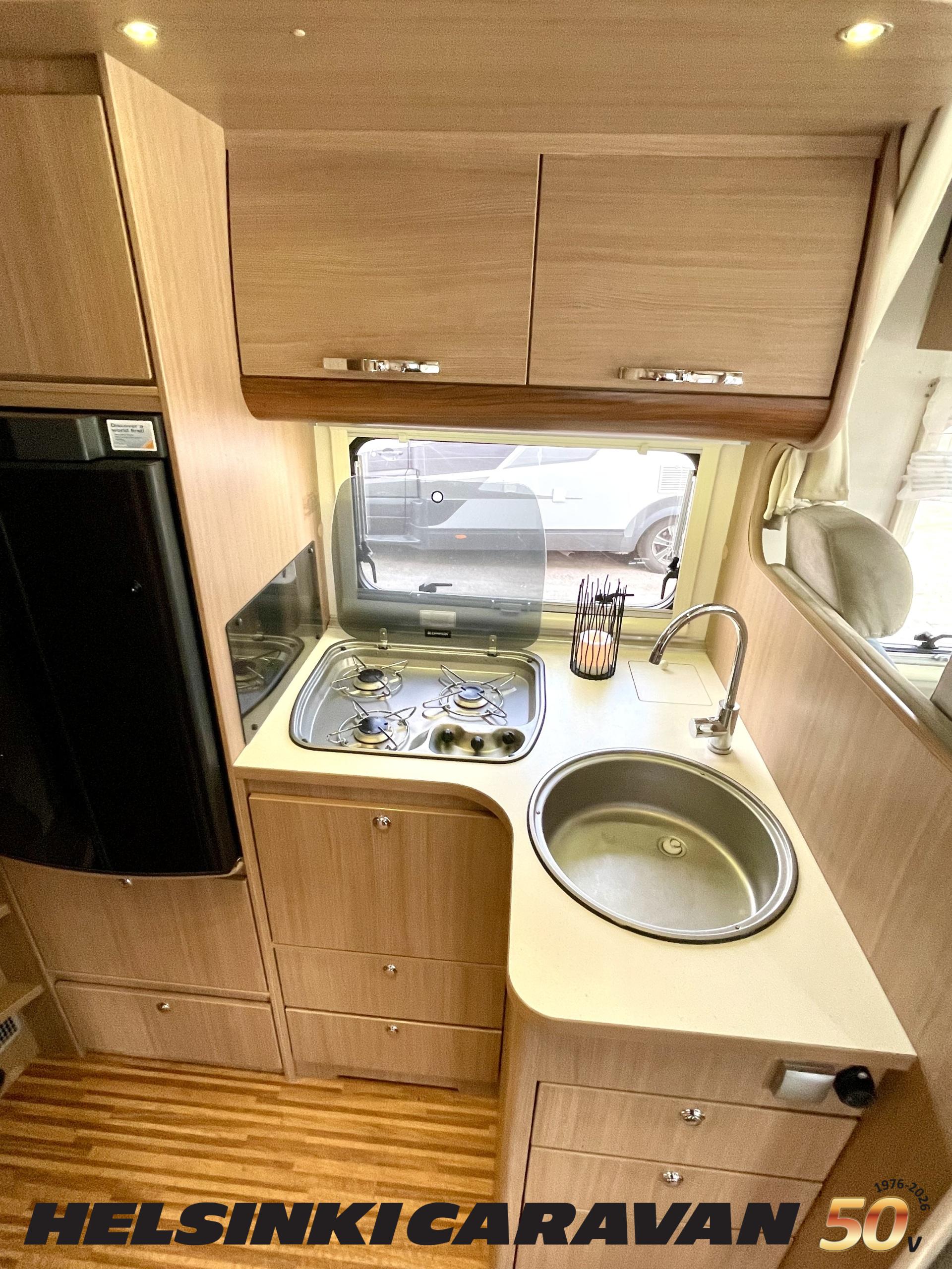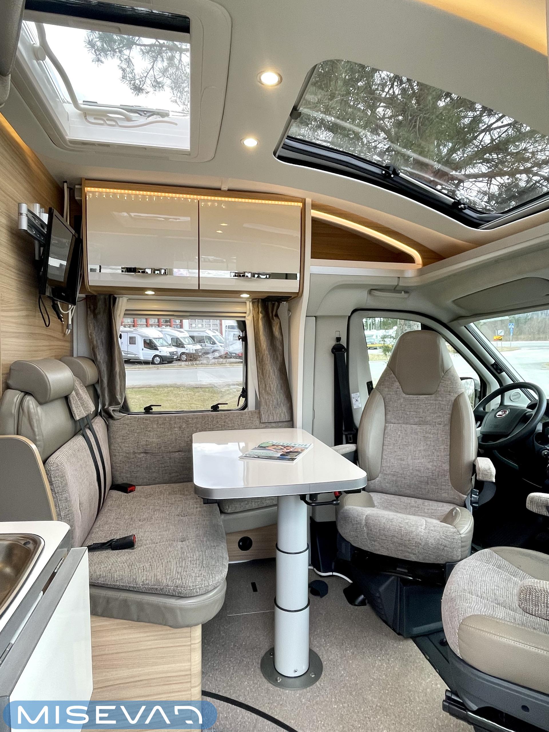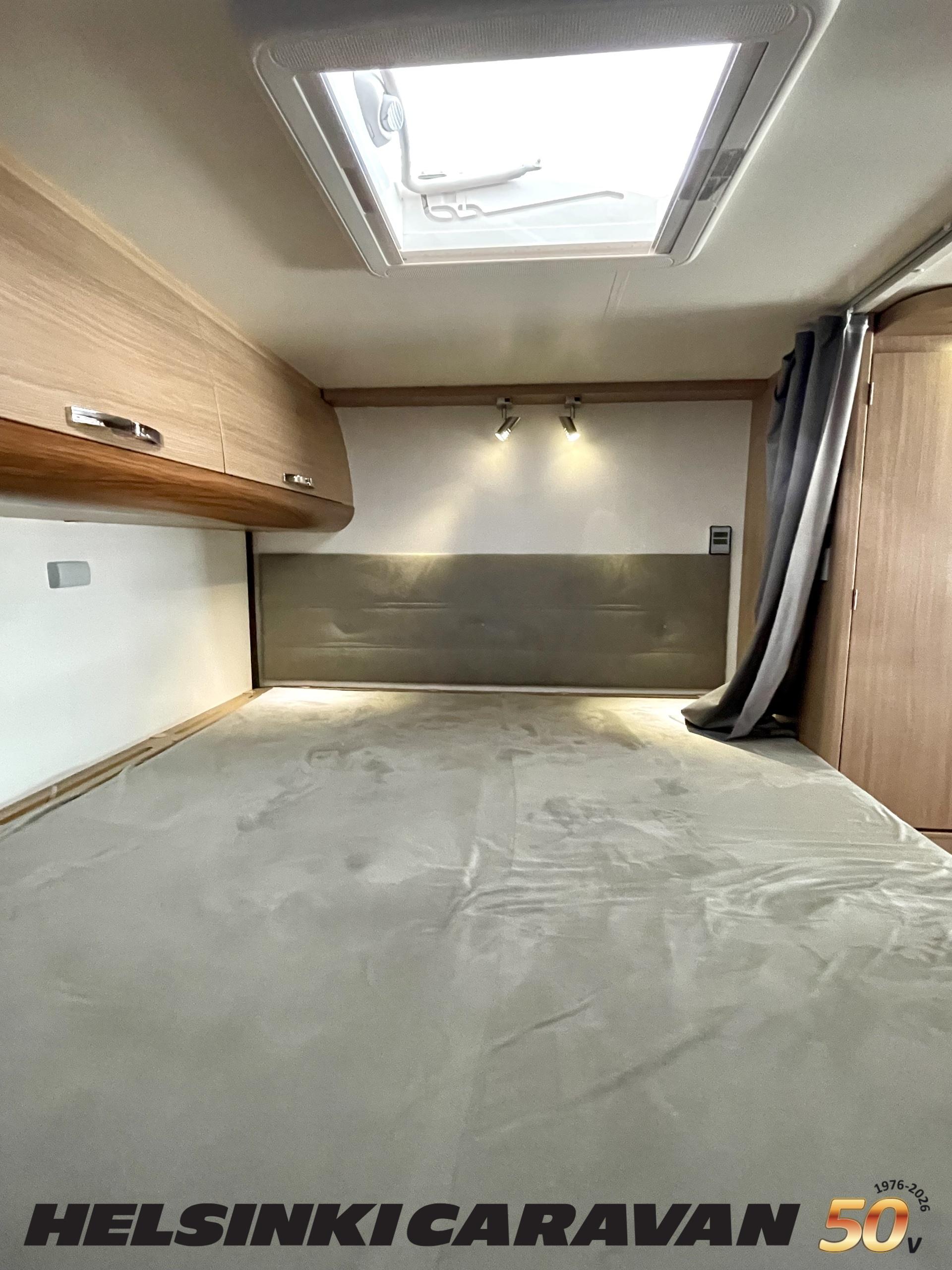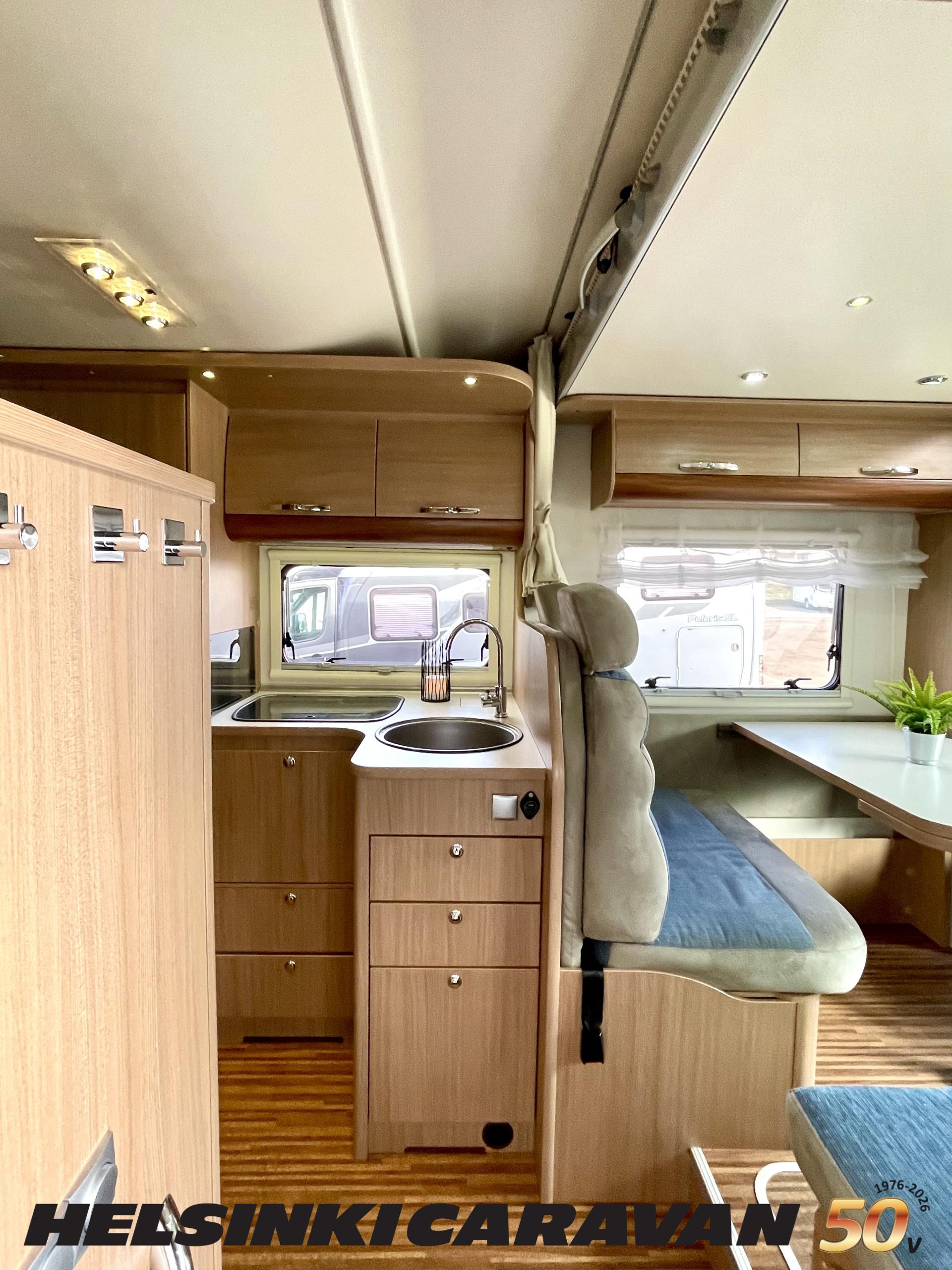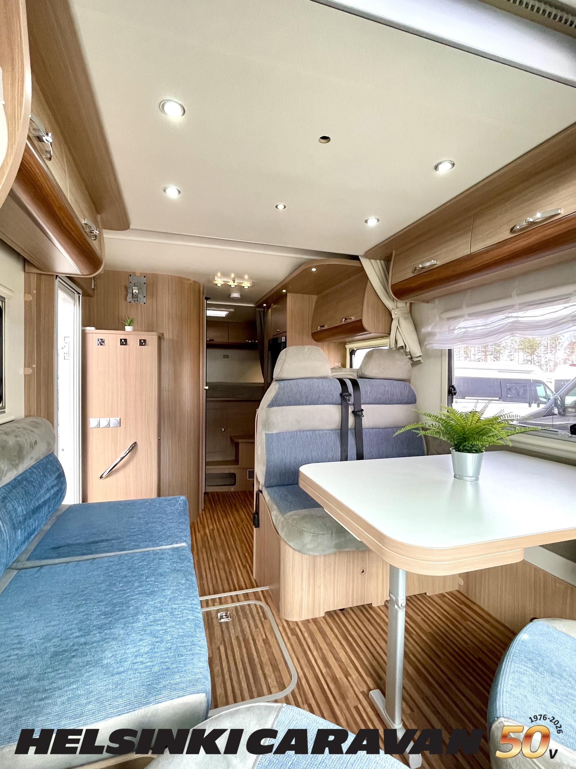 Ajotietokone, ABS-jarrut, Airbag, Eristetty harmaavesisäiliö, Ilmastointi ajotilassa, Jääkaappi, Kahdet renkaat, Kasetti WC, Kasettiverhot, Keskuslukitus, Keskuslukitus kaukosäädöllä, Keskuslämmitys, Käynnistyksenesto, Lattialämmitys, Liesi, Lämminvesiboileri, Markiisi, Ohjaustehostin, Parivuode, Pyöräteline, Stereot, Suihku, Sähkökäyttöiset ikkunat, Sähköpatruuna, Sähköpeilit, Trumatic, Turbo, TV-antenni/lautasantenni, Vak.nopeudensäädin