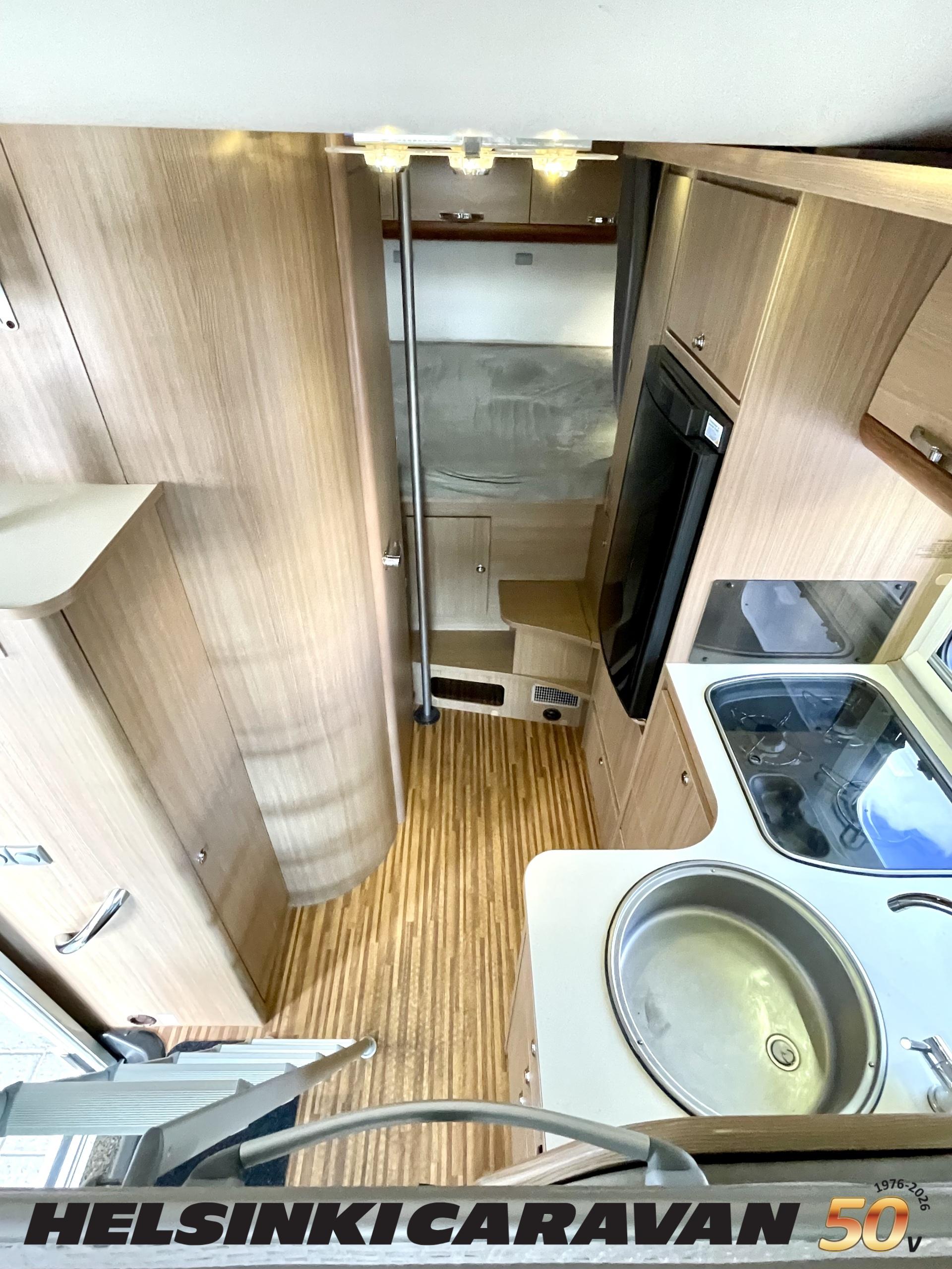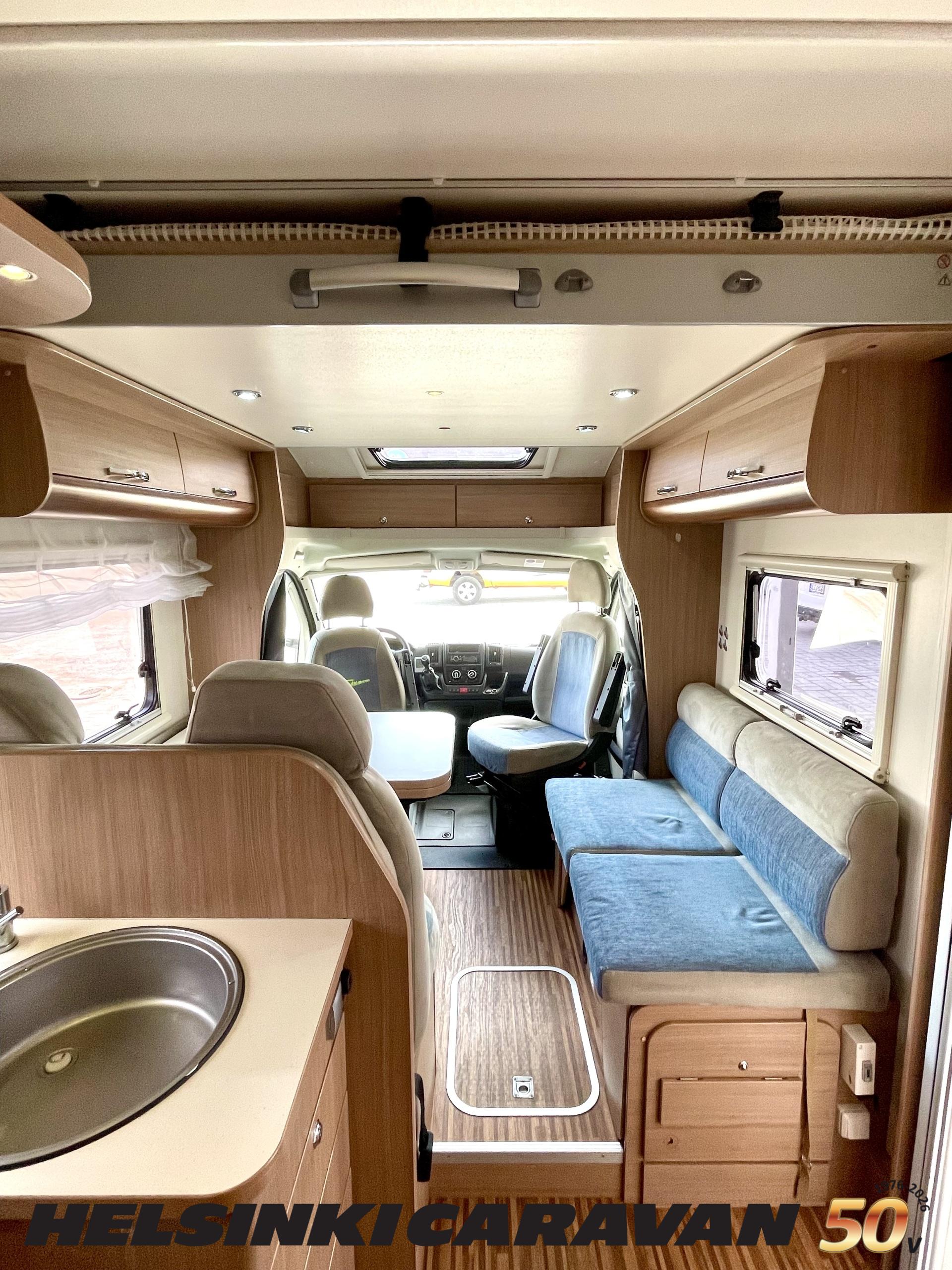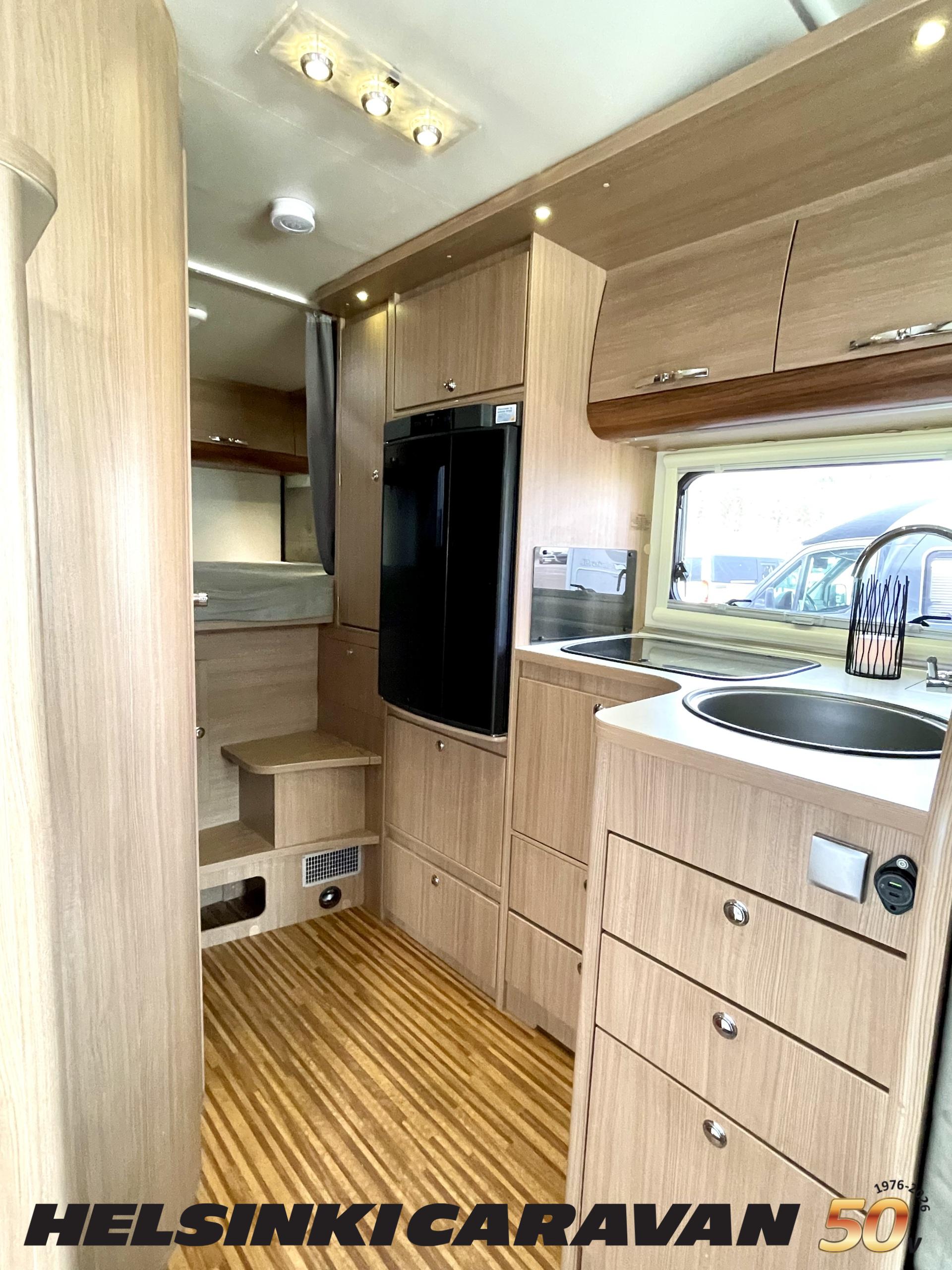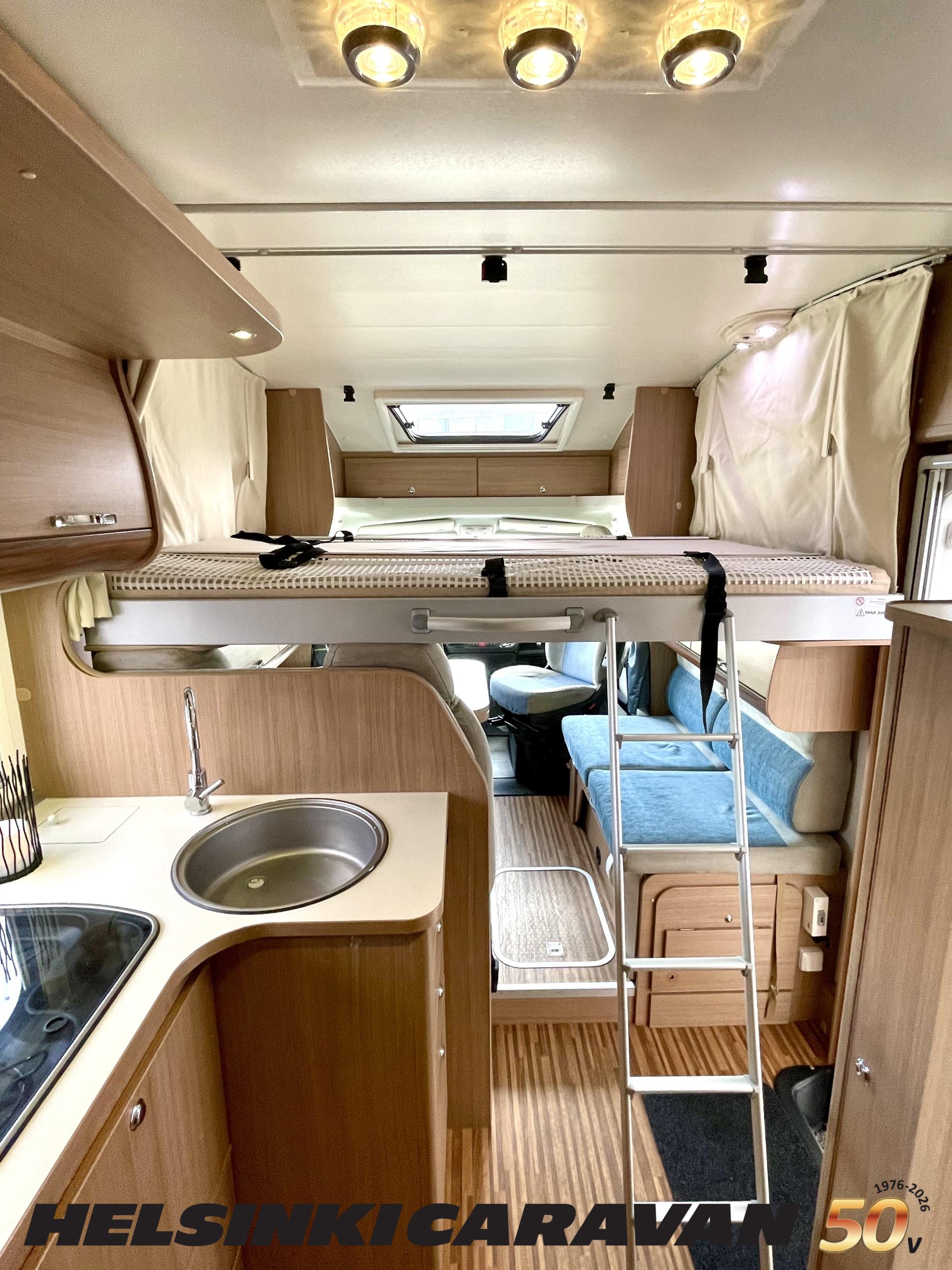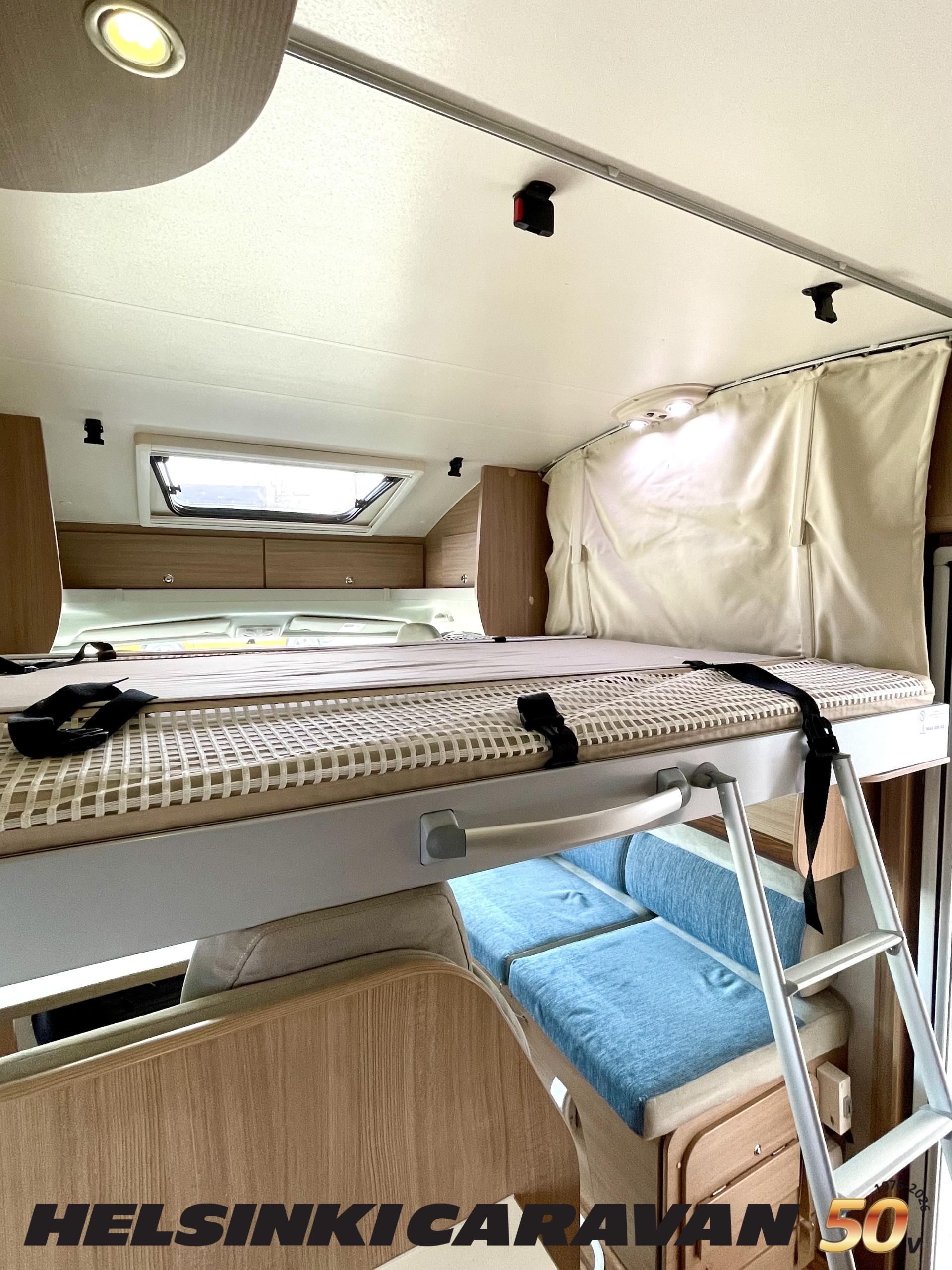 Ajotietokone, ABS-jarrut, Airbag, Eristetty harmaavesisäiliö, Ilmastointi ajotilassa, Jääkaappi, Kahdet renkaat, Kasetti WC, Kasettiverhot, Keskuslukitus, Keskuslukitus kaukosäädöllä, Keskuslämmitys, Käynnistyksenesto, Lattialämmitys, Liesi, Lämminvesiboileri, Markiisi, Ohjaustehostin, Parivuode, Pyöräteline, Stereot, Suihku, Sähkökäyttöiset ikkunat, Sähköpatruuna, Sähköpeilit, Trumatic, Turbo, TV-antenni/lautasantenni, Vak.nopeudensäädin