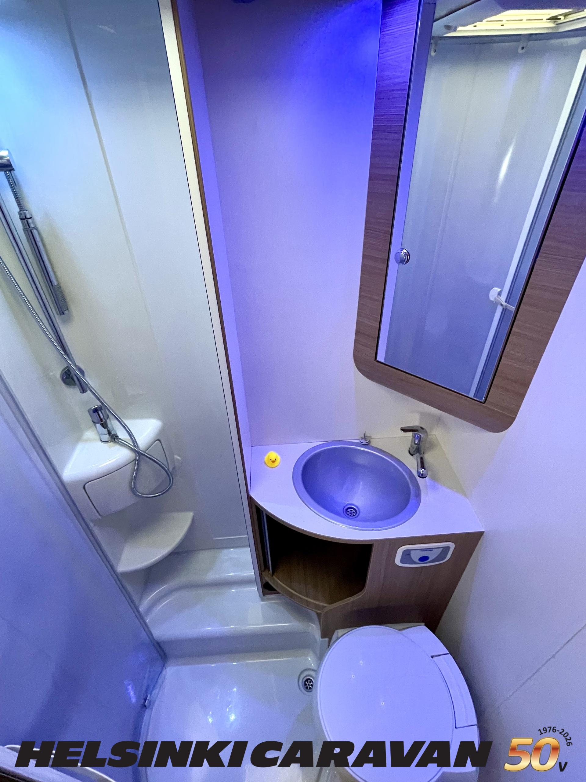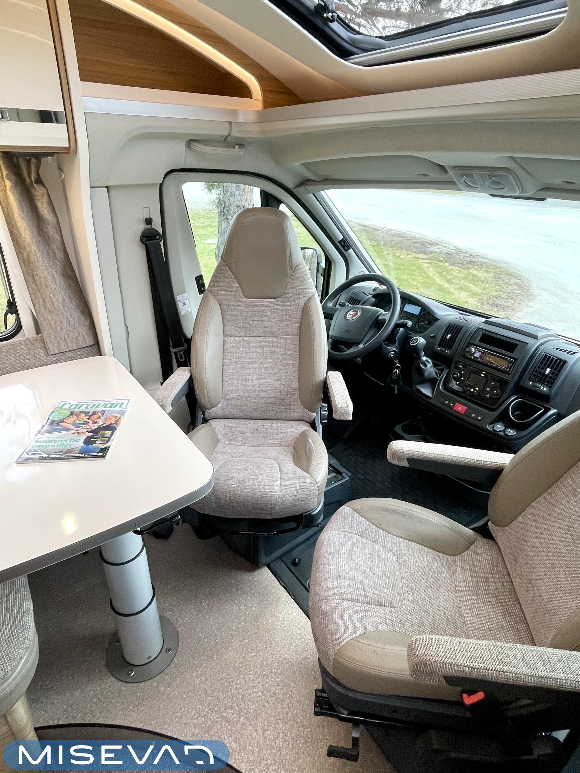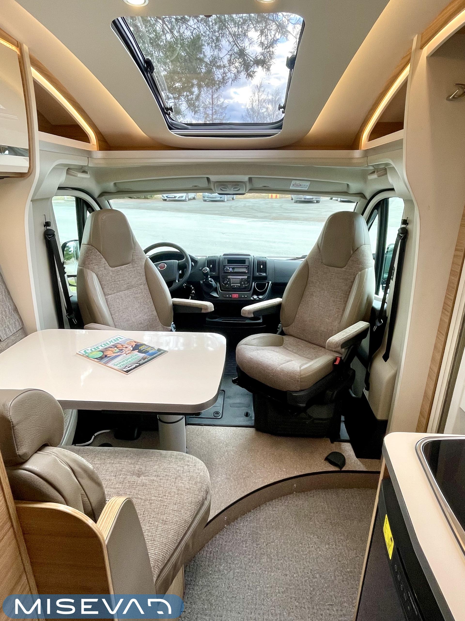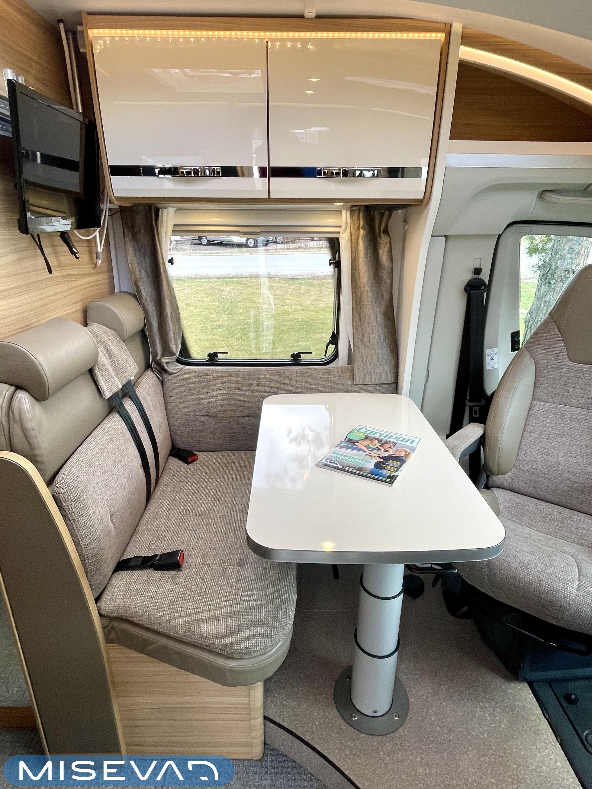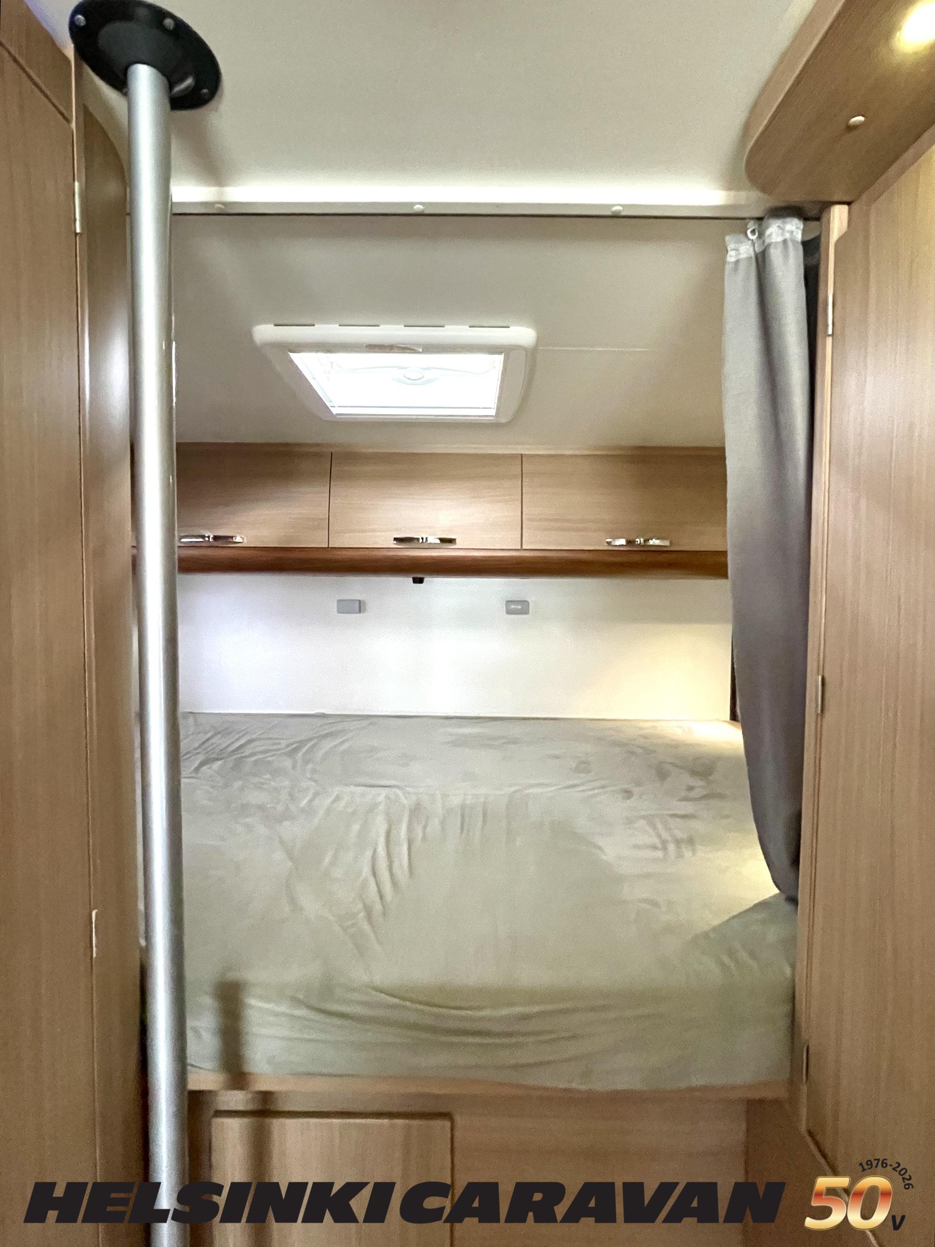 Ajotietokone, ABS-jarrut, Airbag, Eristetty harmaavesisäiliö, Ilmastointi ajotilassa, Jääkaappi, Kahdet renkaat, Kasetti WC, Kasettiverhot, Keskuslukitus, Keskuslukitus kaukosäädöllä, Keskuslämmitys, Käynnistyksenesto, Lattialämmitys, Liesi, Lämminvesiboileri, Markiisi, Ohjaustehostin, Parivuode, Pyöräteline, Stereot, Suihku, Sähkökäyttöiset ikkunat, Sähköpatruuna, Sähköpeilit, Trumatic, Turbo, TV-antenni/lautasantenni, Vak.nopeudensäädin