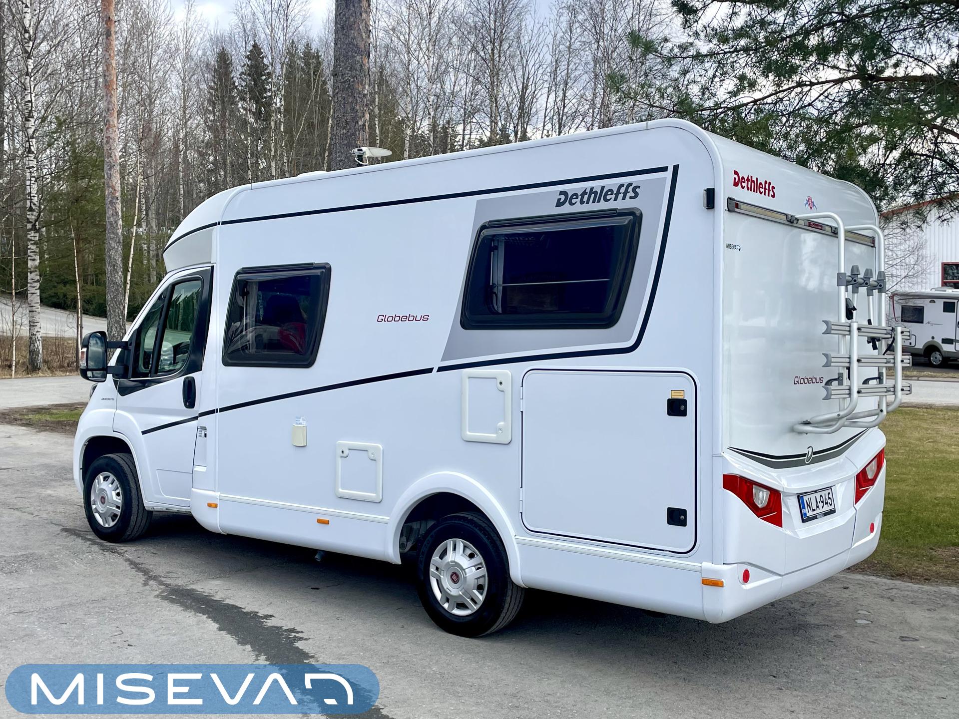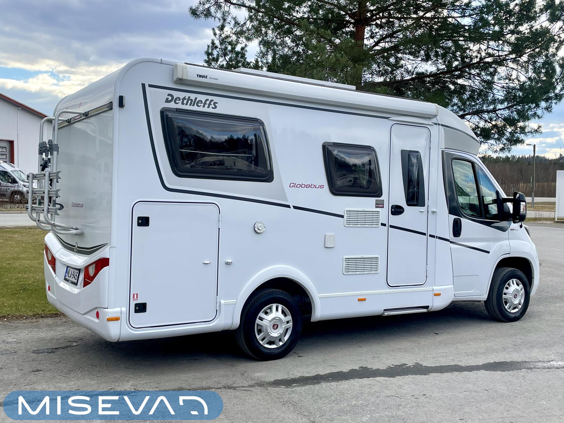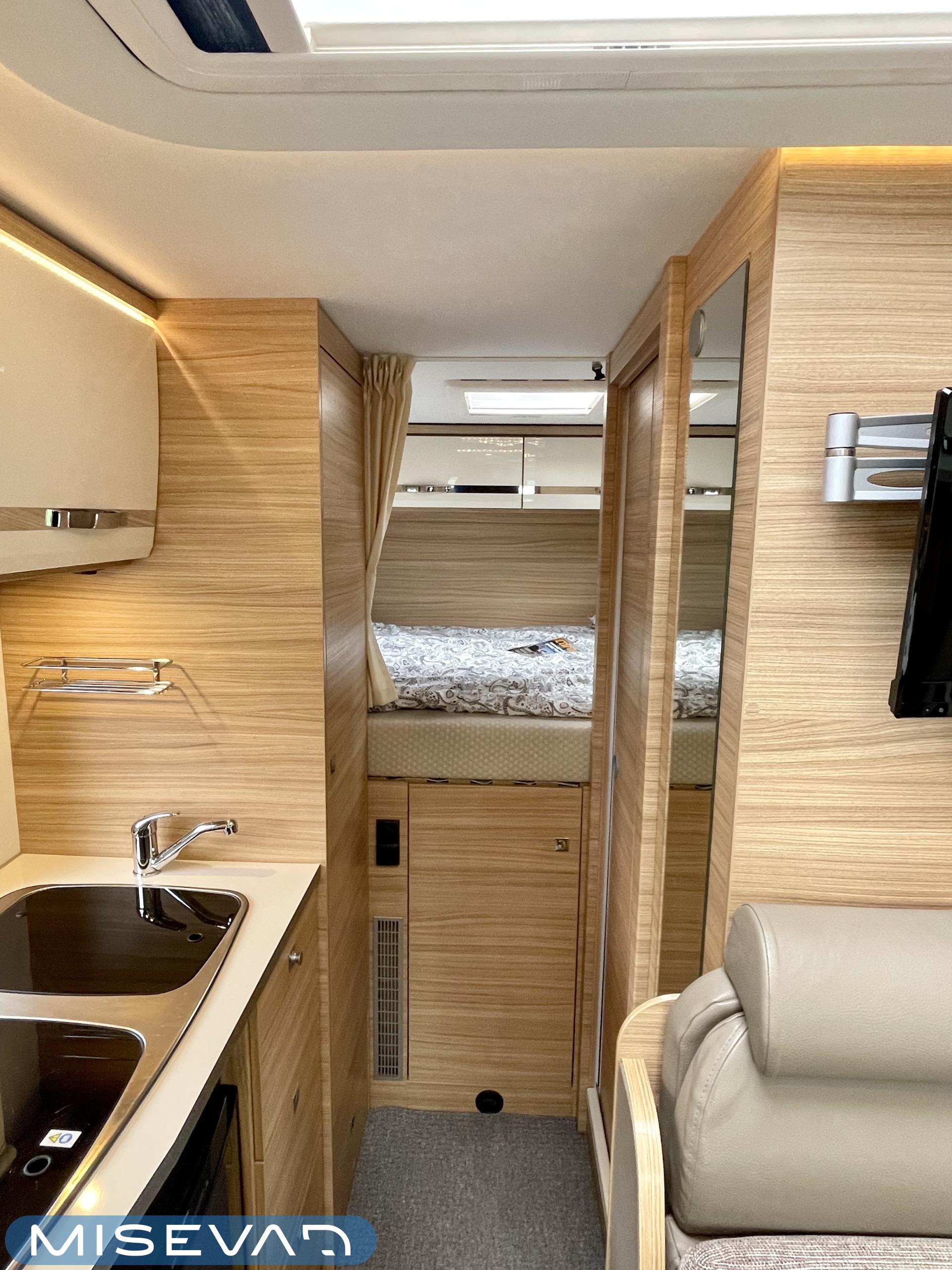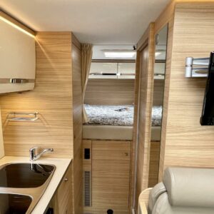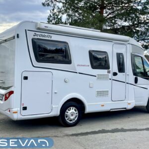 Kyllä silmä lepää tämän Dethleffsin sisustuksessa. Valoa ja vaaleutta riittää ja varsinkin aurinkoisena päivänä voi vain hämmästellä miten nätti auto oikeasti on! Takana on kivan kokoinen parisänky poikittain ja sängyn alla on yksi tämän kompaktin matkakulkineen hienous. Nimittäin iso takatallli. Tämän kokoisessa autossa se ei ole mikään itsestäänselvyys, mutta tässä on ajateltu kaikkia harrastajia ja ulkona viihtyjiä. Peräänhän saisi vaikka kanootinkin mukaan. Ehkä puhallettavan sellaisen kuitenkin. Keittiössä kokkailee helposti niin aamupalat, lounaat ja iltapalatkin. Tilaa on ja kaappeja riittää! Ja vieressä olevan ruokailutilan voi muuttaa myös sängyksi teleskooppijalan ansiosta. Visuaalista lämpöä sisälle tuo myös tyylikkäät puunsävyt ja ripauksen krumeluuria, kromityyliset yksityiskohdat. Ja tämä autohan on juuri hieman alle kuusimetrinen, eikä sitä sisustasta kyllä huomaa mitenkään. Auton pituus tai tässä tapauksessa lyhyys, tekee myös sen että sillä mahtuu helpommin parkkiin kuin parkkiin. Upea ja tyylikäs kokonaisuus! Tule tutustumaan paikanpäälle ja aurinkoisena päivänä kannattaa ottaaaurinkolasit mukaan. Tulet vielä häikäistymään!