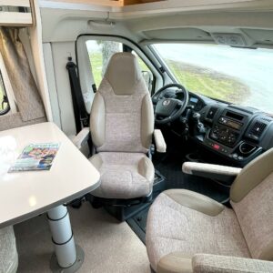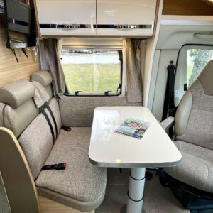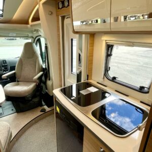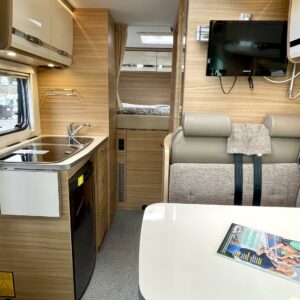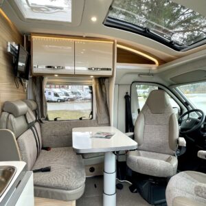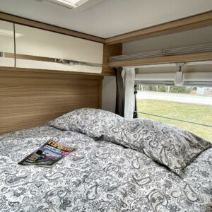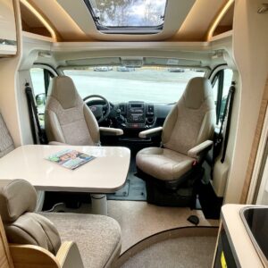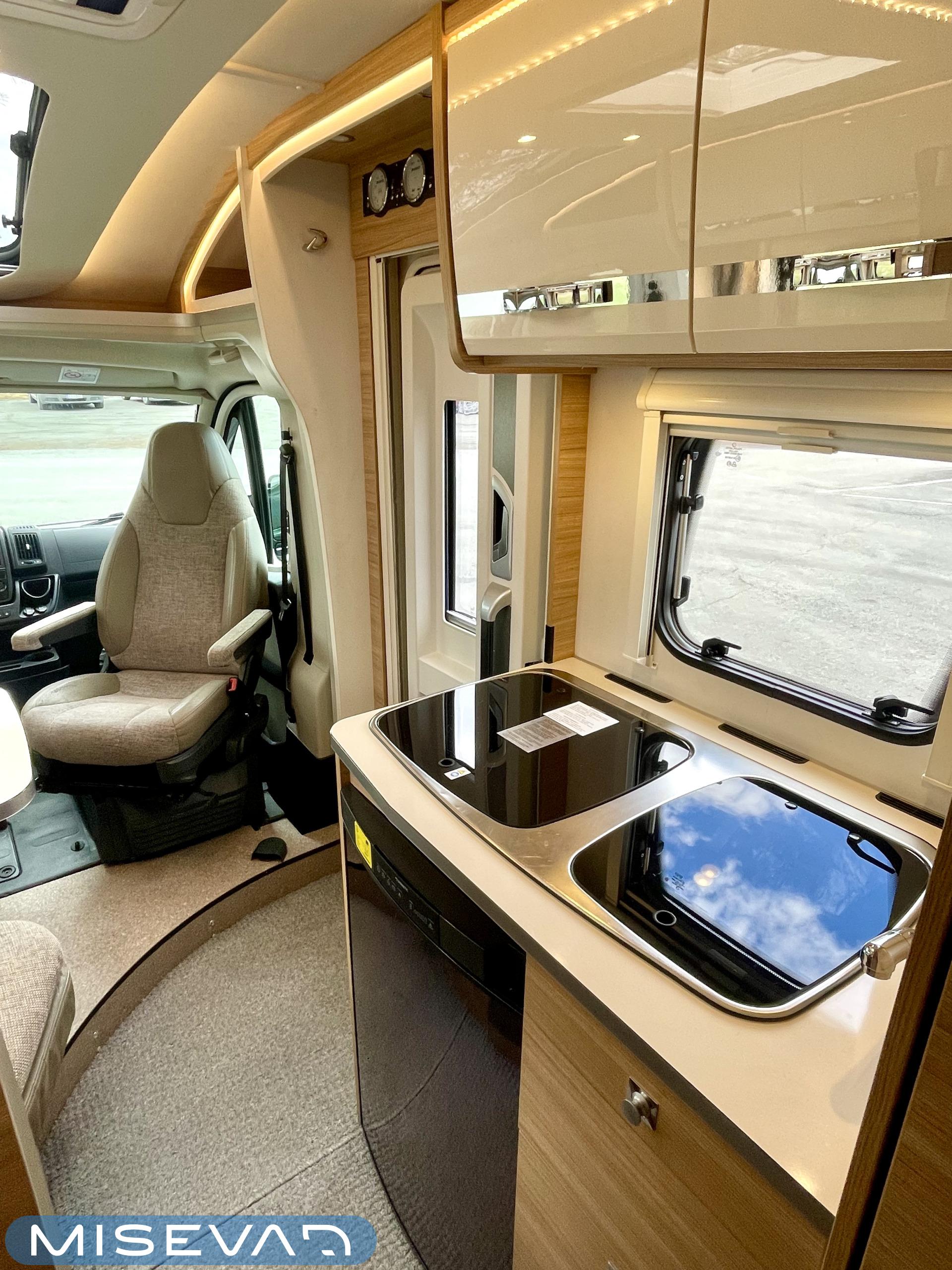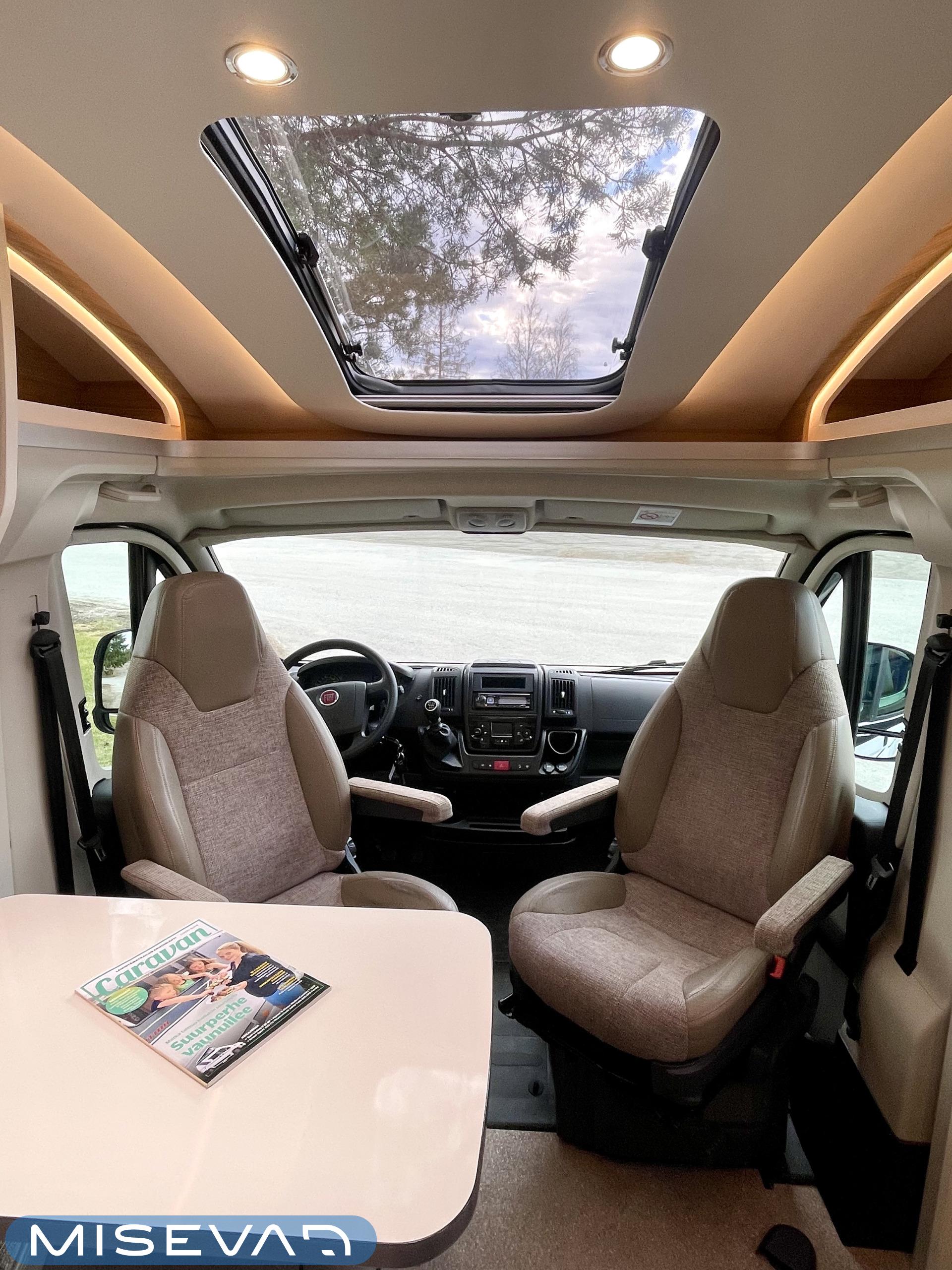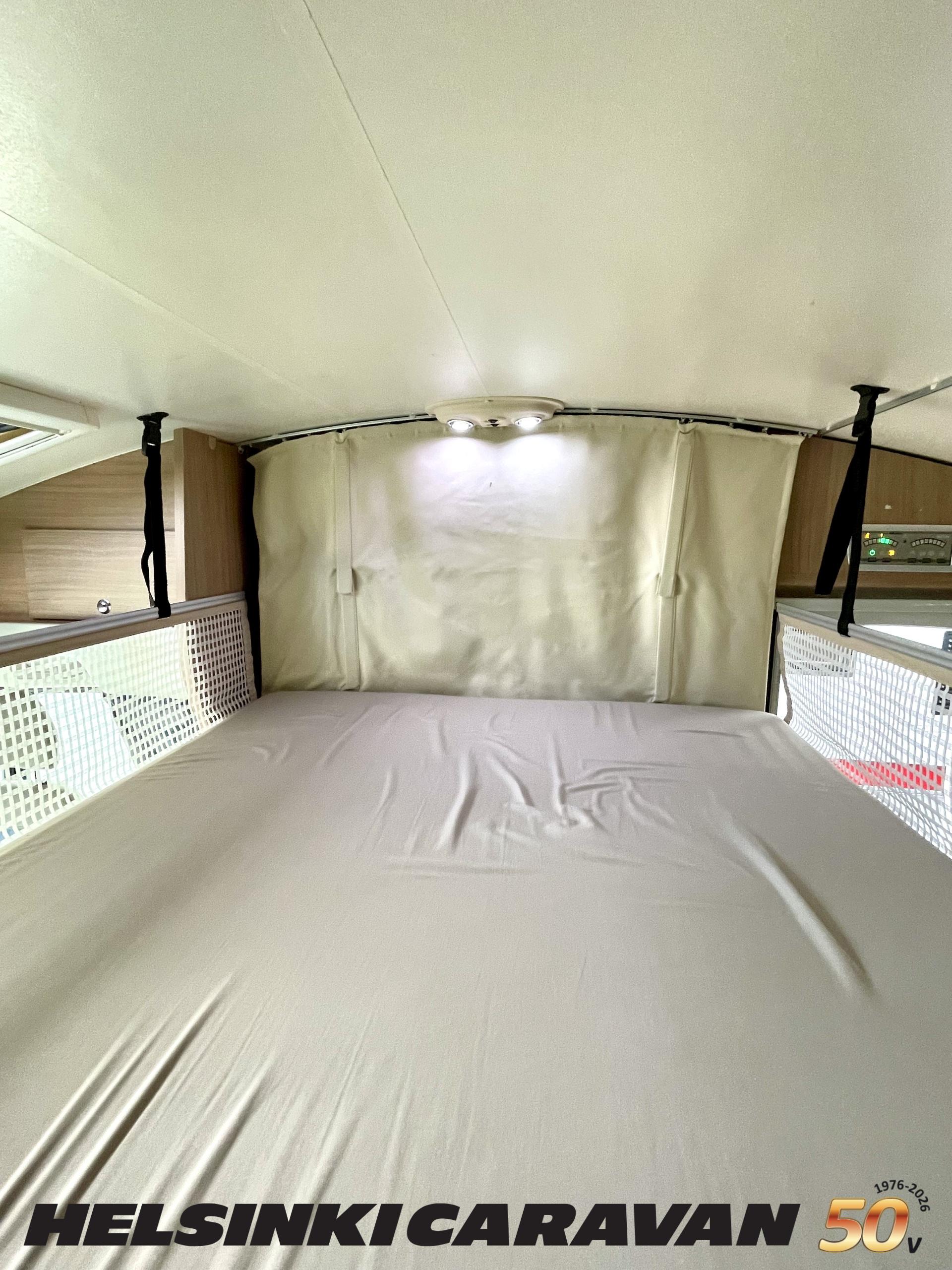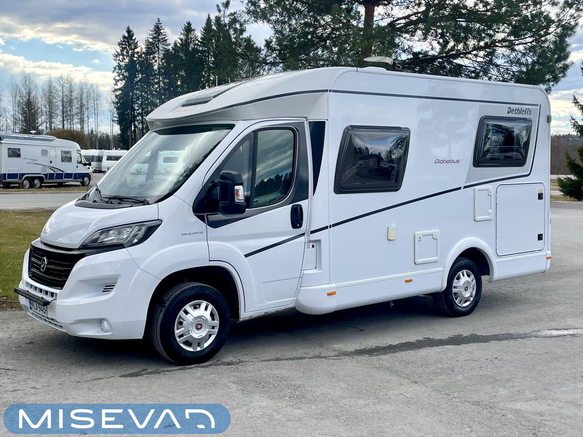 Kyllä silmä lepää tämän Dethleffsin sisustuksessa. Valoa ja vaaleutta riittää ja varsinkin aurinkoisena päivänä voi vain hämmästellä miten nätti auto oikeasti on! Takana on kivan kokoinen parisänky poikittain ja sängyn alla on yksi tämän kompaktin matkakulkineen hienous. Nimittäin iso takatallli. Tämän kokoisessa autossa se ei ole mikään itsestäänselvyys, mutta tässä on ajateltu kaikkia harrastajia ja ulkona viihtyjiä. Peräänhän saisi vaikka kanootinkin mukaan. Ehkä puhallettavan sellaisen kuitenkin. Keittiössä kokkailee helposti niin aamupalat, lounaat ja iltapalatkin. Tilaa on ja kaappeja riittää! Ja vieressä olevan ruokailutilan voi muuttaa myös sängyksi teleskooppijalan ansiosta. Visuaalista lämpöä sisälle tuo myös tyylikkäät puunsävyt ja ripauksen krumeluuria, kromityyliset yksityiskohdat. Ja tämä autohan on juuri hieman alle kuusimetrinen, eikä sitä sisustasta kyllä huomaa mitenkään. Auton pituus tai tässä tapauksessa lyhyys, tekee myös sen että sillä mahtuu helpommin parkkiin kuin parkkiin. Upea ja tyylikäs kokonaisuus! Tule tutustumaan paikanpäälle ja aurinkoisena päivänä kannattaa ottaaaurinkolasit mukaan. Tulet vielä häikäistymään!