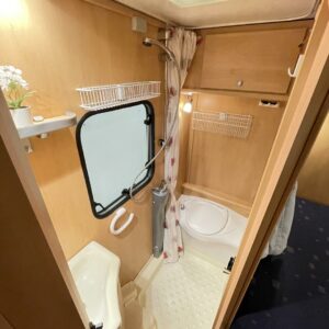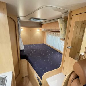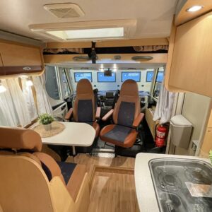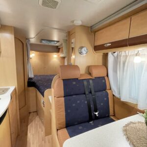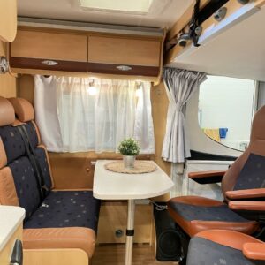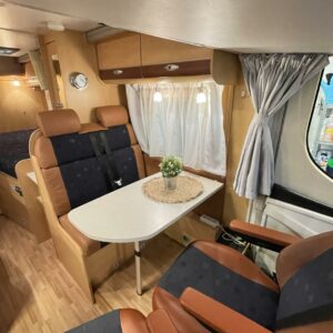 Näyttävä ja avara matka-auto, jossa leveät vuoteet neljälle. Edessä pöytäryhmä kääntyvin ohjaamonistuimin. Ohjaamon päällä alaslaskettava parivuode. Takana parivuode pitkittäin ja vieressä wc- tila suihkulla. Keskellä keittiö.