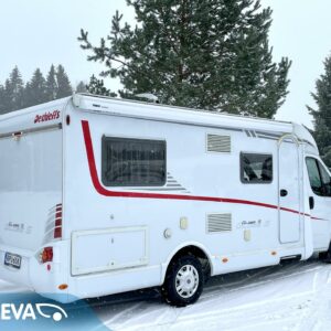 Siistikuntoinen Dethleffs mukavasti varusteltuna. Turvavyölliset istuinpaikat kuudelle.