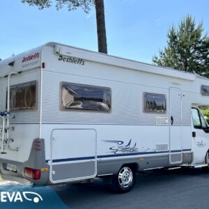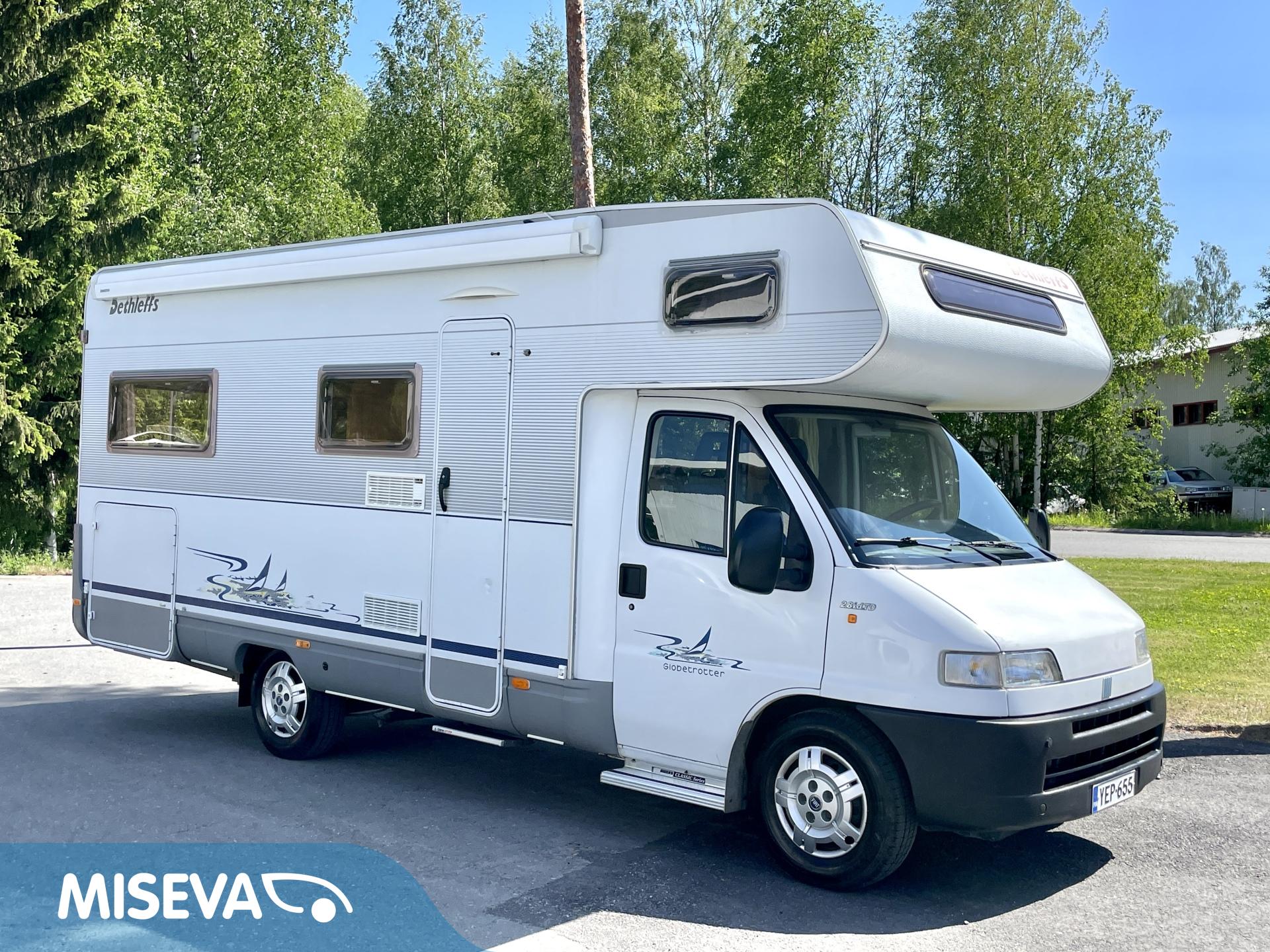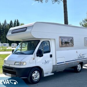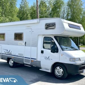 Jyhkeä, lähes 7 m pitkä matka- auto Fiatin Maxi- alustalla ja pirteällä 2.8- litraisella moottorilla.