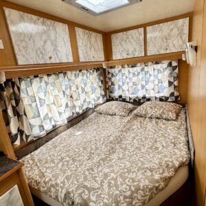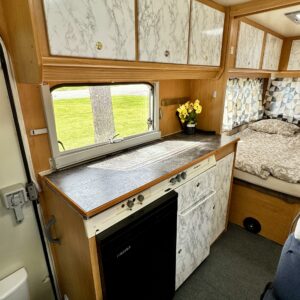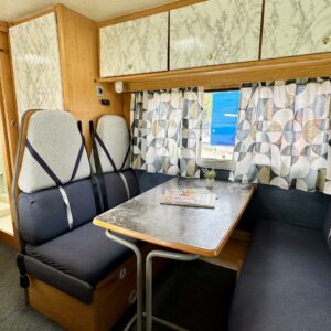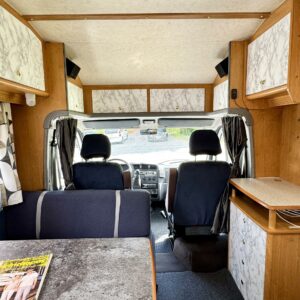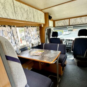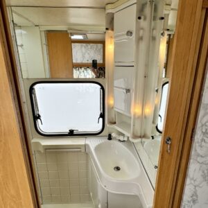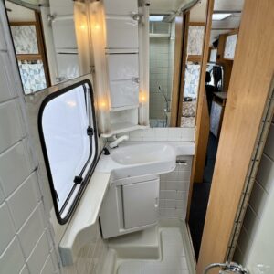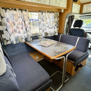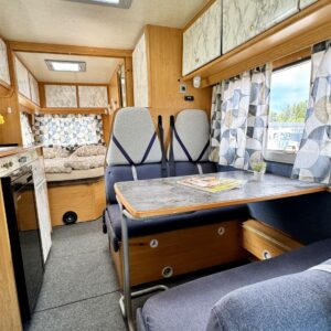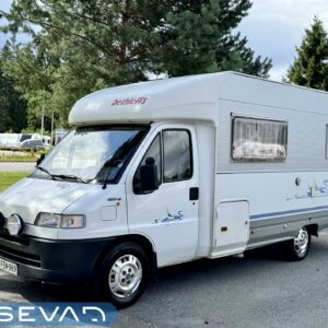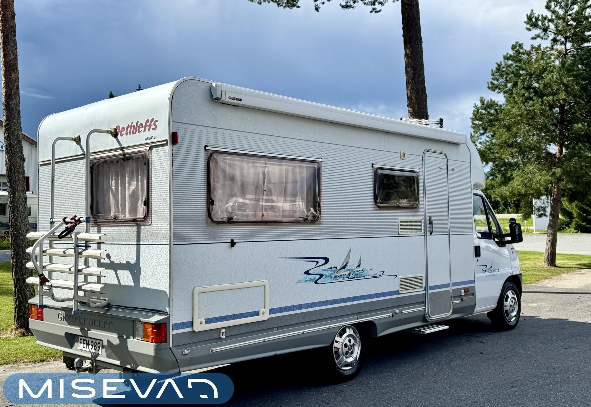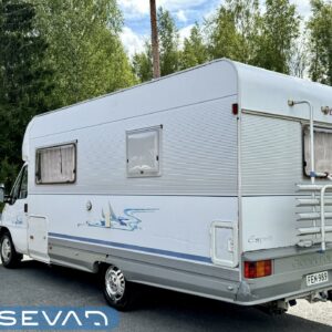 Tämä Dethleffs kätkee sisäänsä yllätyksen. Autoa on freesattu pinnoiltaan siistimmäksi. Hyvällä maulla sisustetussa Dethleffissä löytyy nokalta Fiatin tuttu ja turvallinen 2.5 litrainen voimanpesä. Taakse pääsee nukkumaan 130 x 190 cm kokoiseen, pehmeään sänkyyn. Sängyn alaosa on kokonaisuudessaan säilytystilaa ja sinne pääsee käsiksi myös takaluukun kautta, ulkoa. Keittiö tarjoilee mahtavasti kokkailutilaa. Ja kätevät suojakannet muodostavat keittiöön yhden pitkän pöydän, niin halutessasi. Autoon on vaihdettu modernimpi kompressori jääkaappi, josta löytyy myös pakastinlokero. Takaosan kylpyhuone on iso ja ikkuna mahdollistaa ulkosuihkun käyttämisen. Ruokailutilaa on neljälle hengelle ja muuntuu tarvittaessa sängyksi. Kaappitilaa löytyy autosta reilusti. Erikoisuutena oven vieressä oleva piironki. Puskailuja varten katolla on myös omavaraisuutta lisäävä aurinkopaneeli. Autolla on varmasti vielä edessä monia mukavia kilometrejä. Tule ja hae omaksesi.