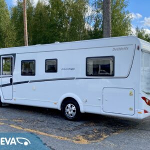 Tyyliä ja tilaa, nyt sitä olisi tarjolla Dethleffs Adavantage matkailuauton muodossa. Siisti kokonaisuus millä mahdollistuu mainiosti myös talvimatkailu. Auton takaosasta löytyy mukavalla korkeudella (ei tarvitse juurikaan ylös kiipeillä) oleva saarekevuode. Vuoteen molemmille puolille on sijoitettu vaatekaapit. Vuoteen alla säilytystiloja ja sinne on käynti myös ulkopuolelta auton molemmilta puolilta. ”Makkarin” saa rauhoitettua omaksi osastokseen paljeoven avulla. Heti makkarin vierestä löytyy WC/kylpyhuonetilat omalla erillisellä suihkutilalla. Keskelle on asemoitu L-keittiö ja sieltä löytyy mm. iso jääkaappi, eli tilaa eväille on riittävästi. Etuosaa hallitsee pöytäryhmä sivusohvalla ja kääntyvillä ohjaamonpenkeillä. Iso kattoluukku tuo mukavasti luonnonvalon sisään. Ohjaamon yläpuolella on alas laskettava vuode kahdelle henkilölle. Lämmitysjärjestelmänä on tehokas ja tasaisen lämmön tuottava Alden nestekeskuslämmitys. Lämmitysjärjestelmästä löytyy myös lämmönvaihdin, sekä ohjaamon lämpömatto. Alden tapaan tästä löytyy luonnollisesti myös lämmitysvastukset (sähköpatruuna). Ohjaamovarusteista mainittakoon ilmastointi, vakionopeudensäädin ja sähkösäätöiset peilit. Markiisi antaa suojaa niin auringolta kun sateelta ja fillarit kulkevat kätevästi mukana takaseinälle sijoitetussa pyörätelineessä. Tällä kelpaa jatkaa reissaamista ruskaretkien jälkeen vaikkapa lasketteluharrastuksen parissa.