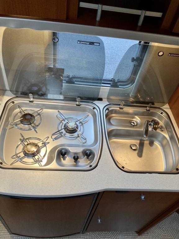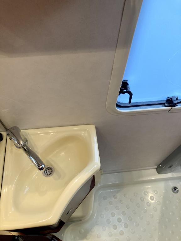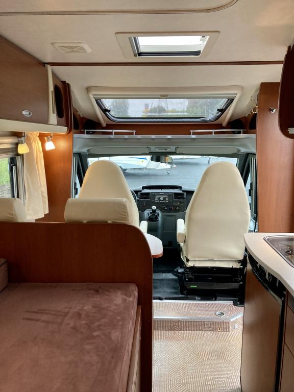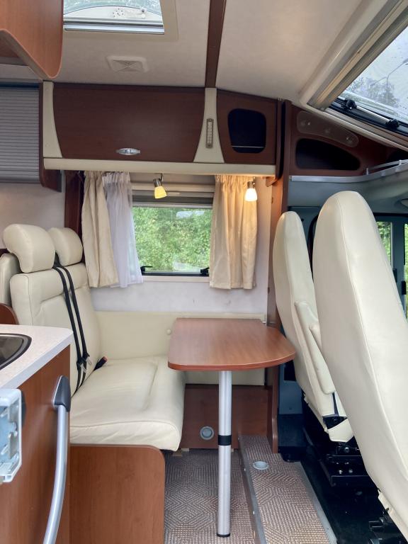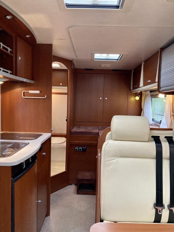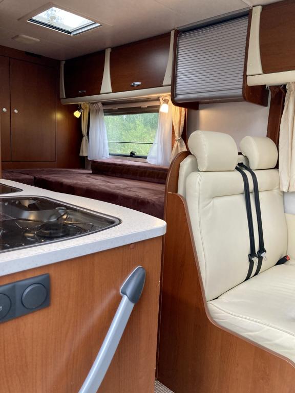 Pohjaratkaisussa edessä pöytäryhmä sekä kääntyvät etuistuimet. Keskiosassa Keittiö sekä kaappitilaa. Takaosassa pitkittäinen parivuode ja Wc -& suihkutila.