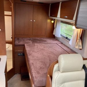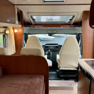 Pohjaratkaisussa edessä pöytäryhmä sekä kääntyvät etuistuimet. Keskiosassa Keittiö sekä kaappitilaa. Takaosassa pitkittäinen parivuode ja Wc -& suihkutila.