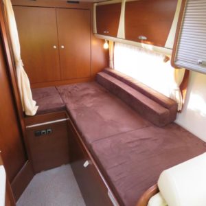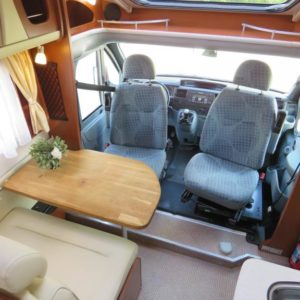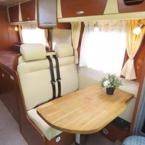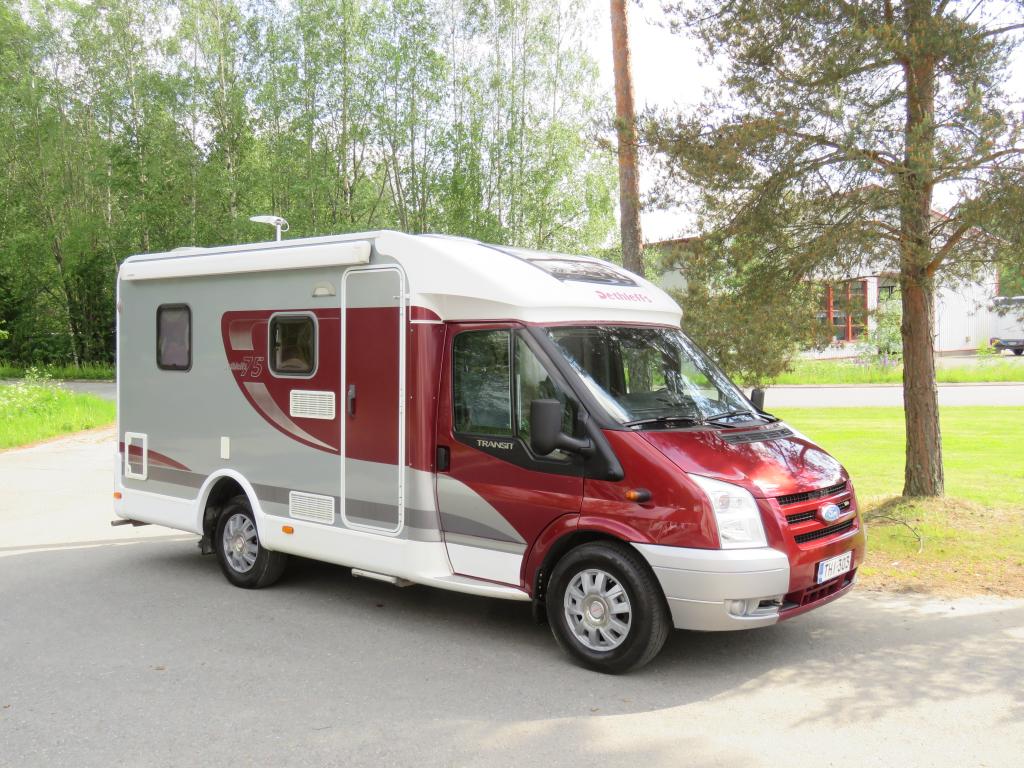Lyhyt puoli- integroitu Dethleffs! Kapea Van- mallia jolla mahtuu liikkumaan myös kaupunkien keskustoissa. Kompakteista ulkomitoista huolimatta toimivat sisätilat; takana pitkittäinen vuode joka levitettävissä tarvittaessa suuremmaksi. Lisäksi valoisa pöytäryhmä neljälle.