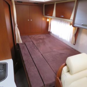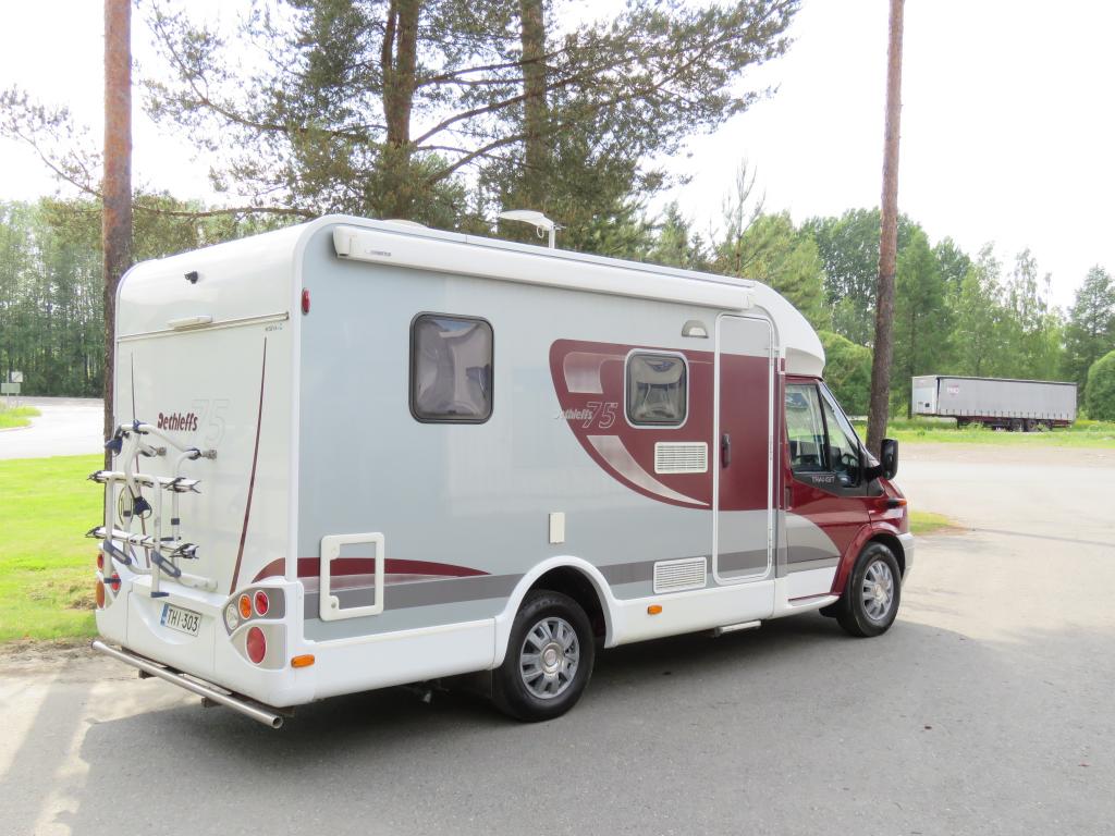 Lyhyt puoli- integroitu Dethleffs! Kapea Van- mallia jolla mahtuu liikkumaan myös kaupunkien keskustoissa. Kompakteista ulkomitoista huolimatta toimivat sisätilat; takana pitkittäinen vuode joka levitettävissä tarvittaessa suuremmaksi. Lisäksi valoisa pöytäryhmä neljälle.