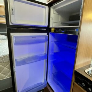 Isolla jääkaappi- pakastimella varustettu keittiö löytyy auton keskivaiheilta.