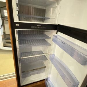 Erillisvuoteet takana jotka yhdistettävissä isoksi vuoteeksi. Erillinen wc ja suihkutila. Keskellä keittiö tilavalla jääkaapilla. Edessä pöytäryhmä jonka päällä alaslaskettava parivuode.