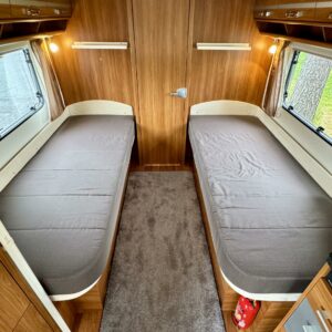 Vaunun etuosassa valoisa ja viihtyisä U- pöytäryhmä, takana mukavat erillisvuoteet ja kunnolliset WC/ pesutilat. Vaunun keskivaiheilla sijaitsee keittiö ja runsaasti säilytystilaa isojen vaatekaappiin muodossa.