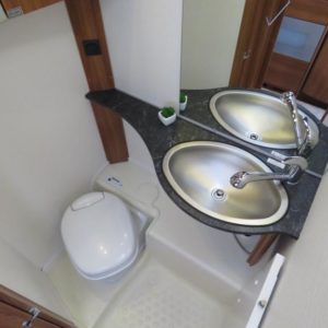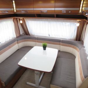 Keulassa tilava U-istuinryhmä, keskellä keittiö sekä wc/ kylpyhuone. Perällä hyvät ja leveät erilliset vuoteet, sänkyjen alla tavaratilaa.