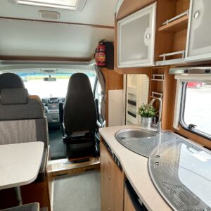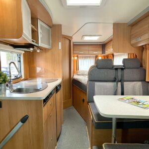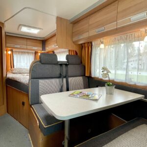 Asuintilan etuosassa keittiön lisäksi on viihtyisä pöytäryhmä neljälle, josta on mahdollista sijata varavuode. Takaosaa hallitsee pitkittäinen parivuode ja tilava kylpyhuone.