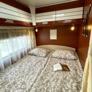 Avara ruokailu tila yhdistettynä laadukkaaseen Dethleffs Gourmet keittiöön takaan niin mukavat illan istujaiset kuin arkiset lounas hetket, leveä ranskalainen vuode takaa miellyttävät lepohetket ja vieressä tilava suihku/wc-tila.