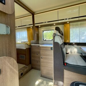 Auton etuosasta löytyy valoisa L- istuinryhmä. Sivusohvan ja kääntyvien etuistuinten ansiosta pöydän ympärille mahtuu jopa 8 henkeä pitämään hauskaa.