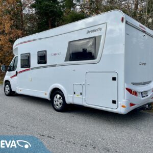 Mahtavasti varusteltu Dethleffs saareke ja -alaslaskuvuoteella.