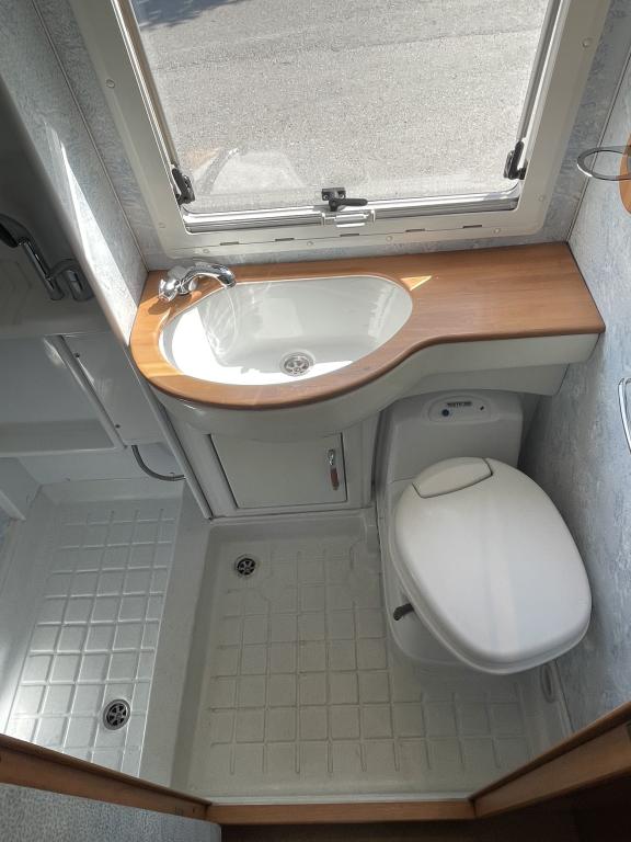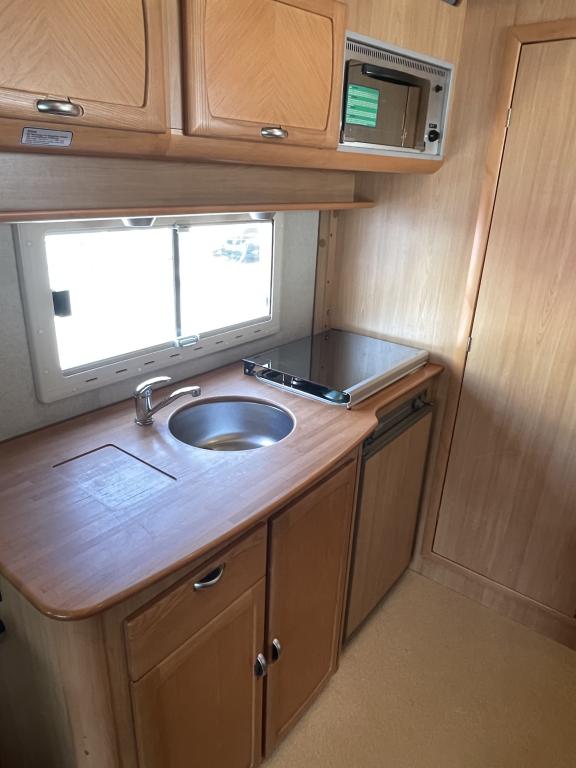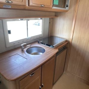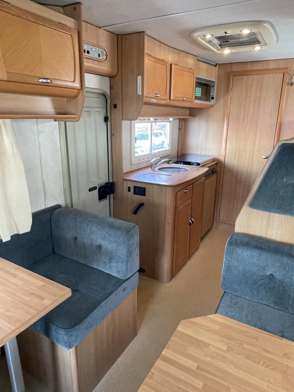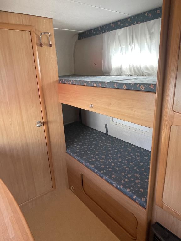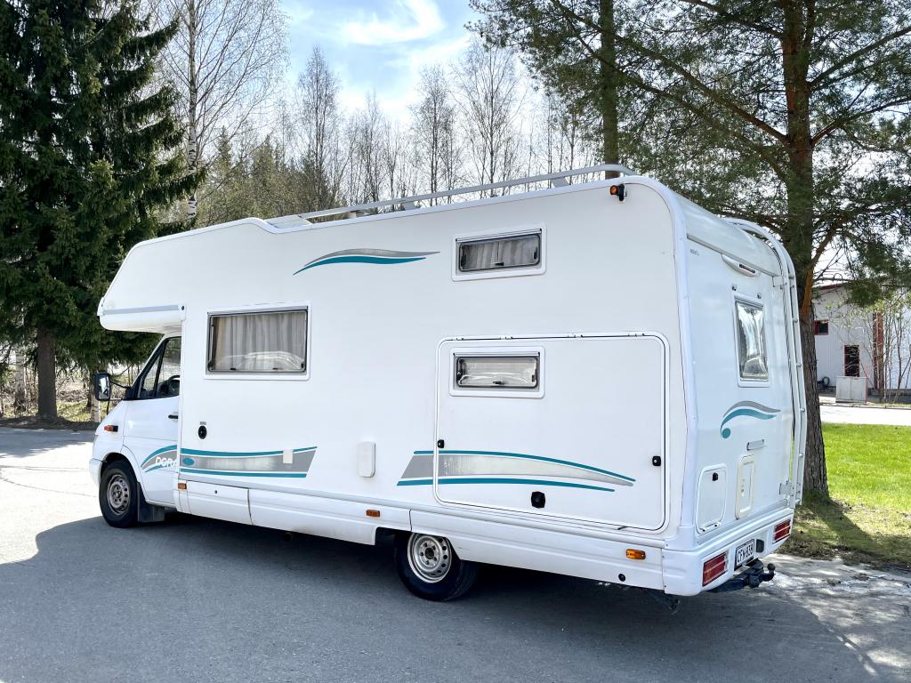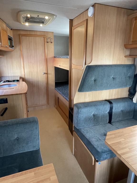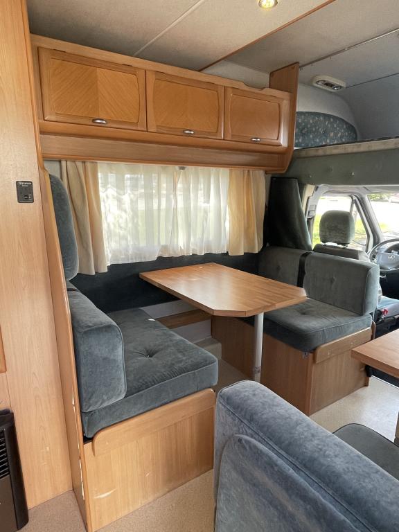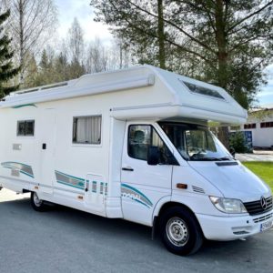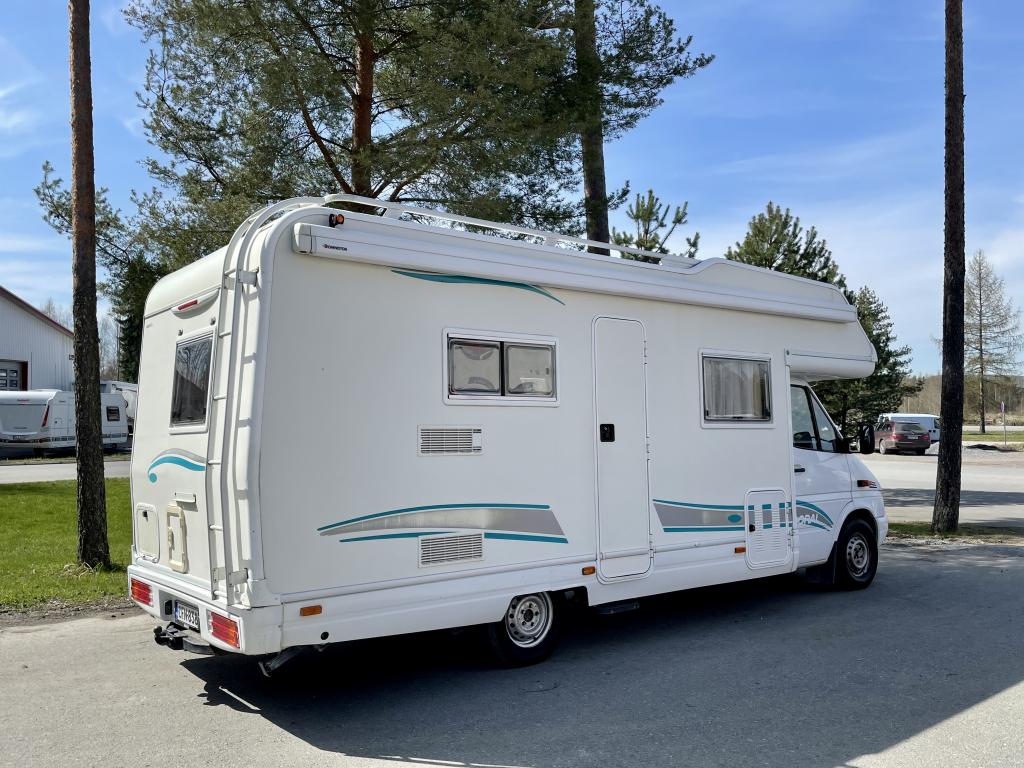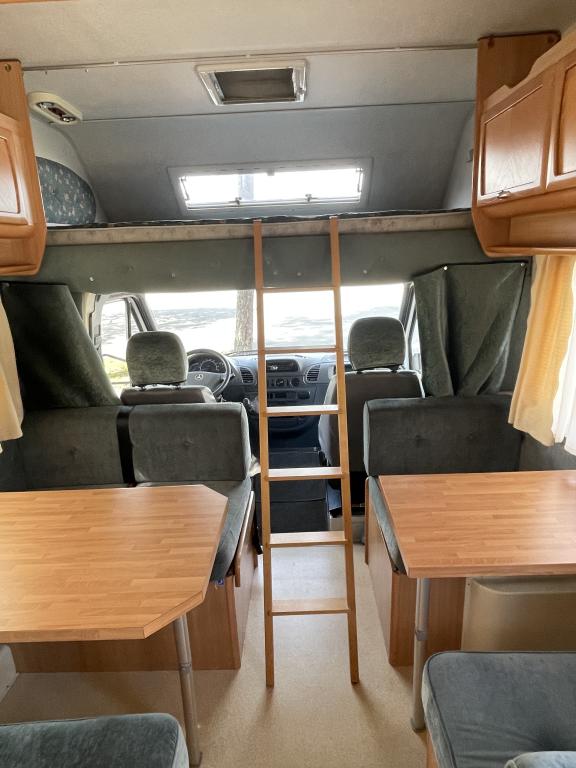 Tilava matka-auto 6:lle matkustajalle. Alkovissa leveä parivuode kahdelle. Keskellä tilava istuinryhmä kuudelle ja takana täysimittaiset kerrosvuoteet ja iso pesuhuone.