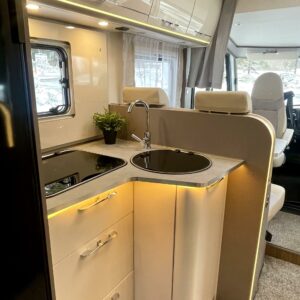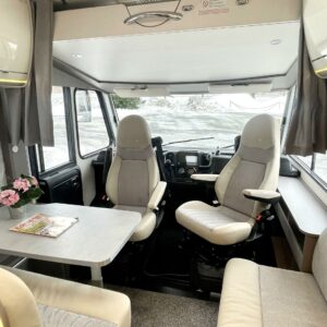 Auton etuosassa on etupenkit kääntäen väljä istuinryhmä viidelle ja keskiosasta löytyy keittiö, missä on korkea jääkaappi sekä säilytystilaa lusikkalaatikolneen. Takaosassa sijaitsee ylellinen WC/suihku yhdistelmä ja erillisvuoteinen makuuhuone sekä runsaasti kaappitilaa. Toinen vuode sijaitsee ohjaamon päällä ja se jättää alas laskettunakin istuinryhmän lähes vapaaksi.